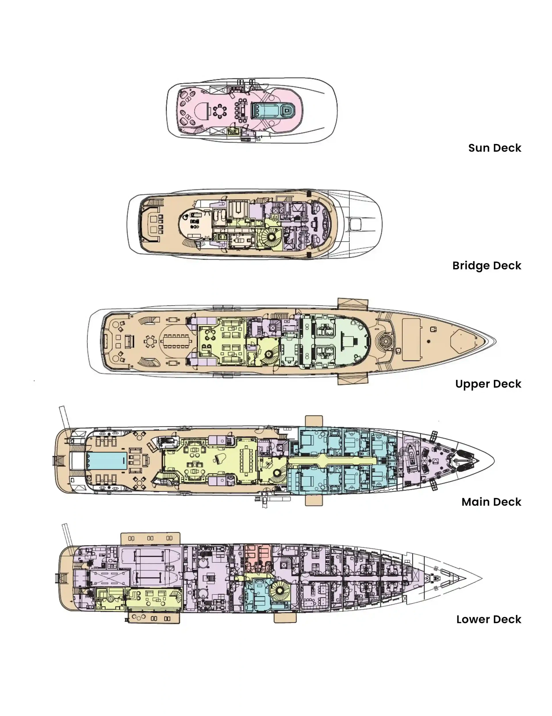 Lady Lara has been designed to comfortably accommodate up to 16 guests in 8 suites. The master suite incorporates its own study and dressing room as well as a his and her bathroom. She is also capable of carrying up to 27 crew onboard to ensure a relaxed luxury yacht experience.