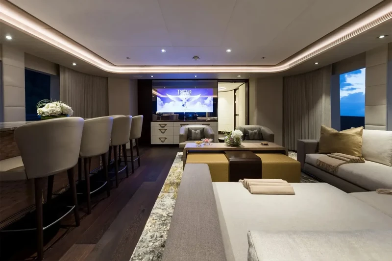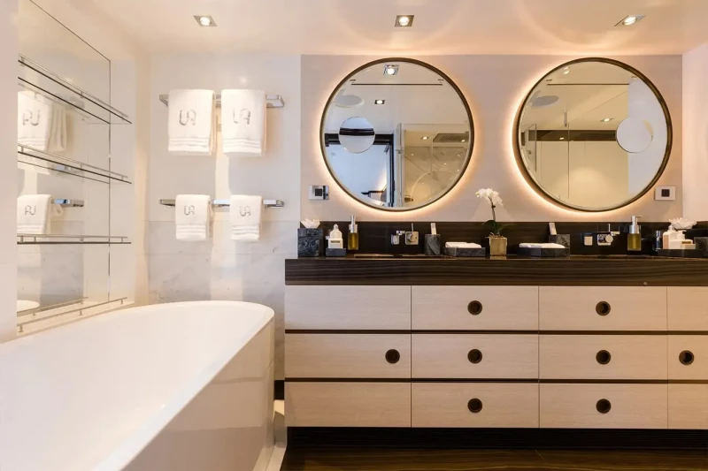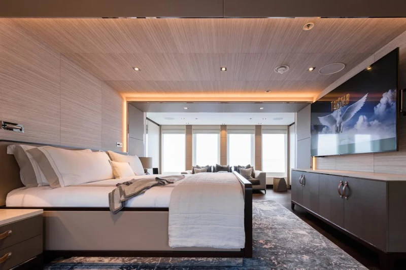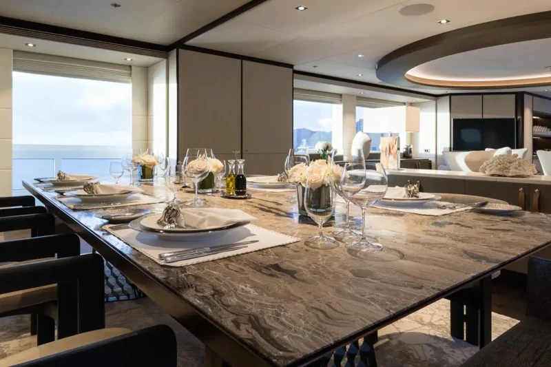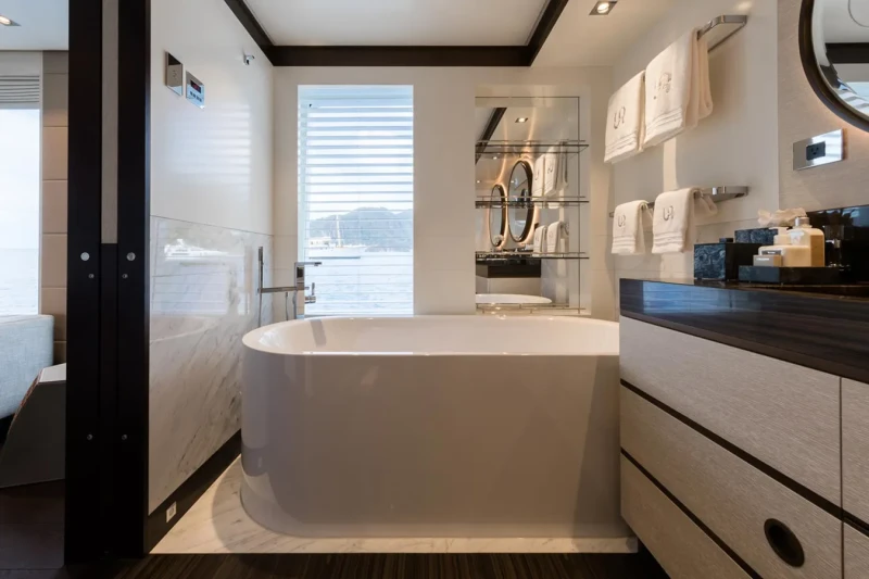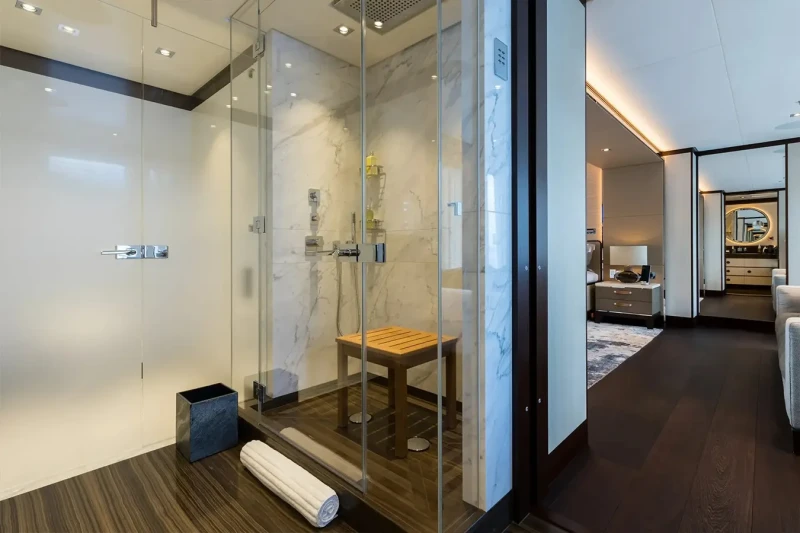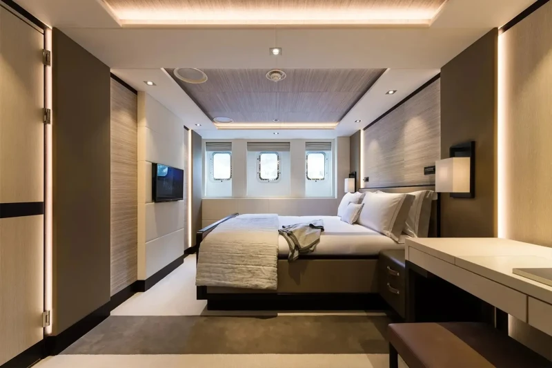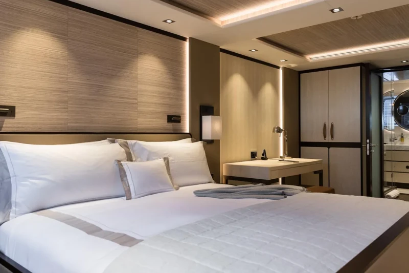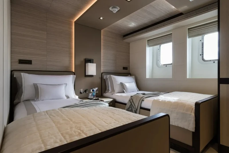 Laurentia offers guest accommodation for up to 12 guests in 6 suites comprising a master suite, one VIP cabin, two double cabins and two twin cabins. She is also capable of carrying up to 13 crew onboard to ensure a relaxed luxury yacht charter experience.