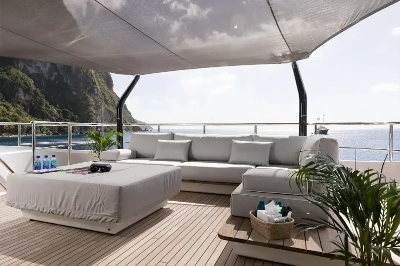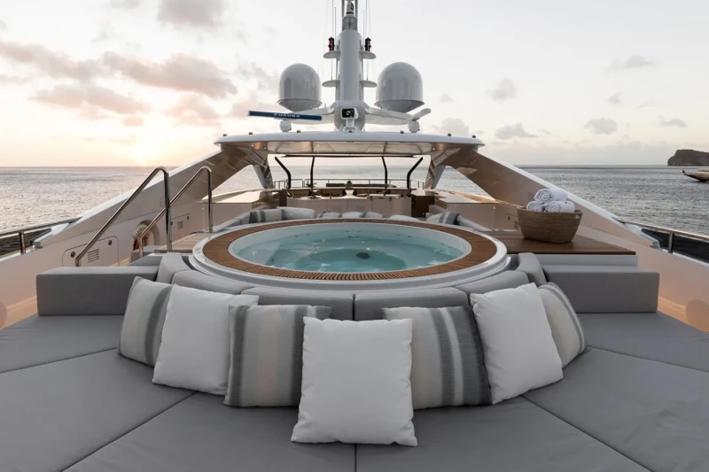 A charter on Laurentia is comfortable and convenient thanks to the provided amenities, notably a beach club for you to relax on the edge of the water. Retreat to the deck jacuzzi and soak up the scenery.