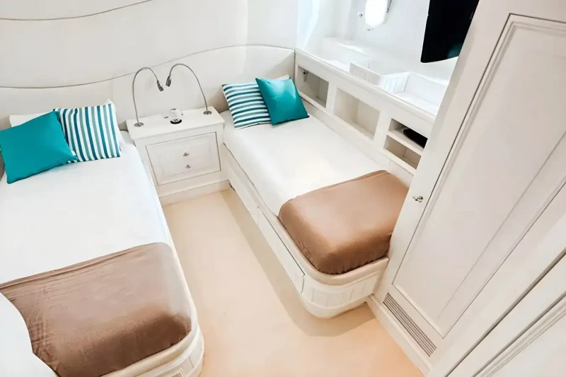 Laziza has been designed to comfortably accommodate up to 8 guests in 4 suites. She is also capable of carrying up to 3 crew onboard to ensure a relaxed luxury yacht experience.