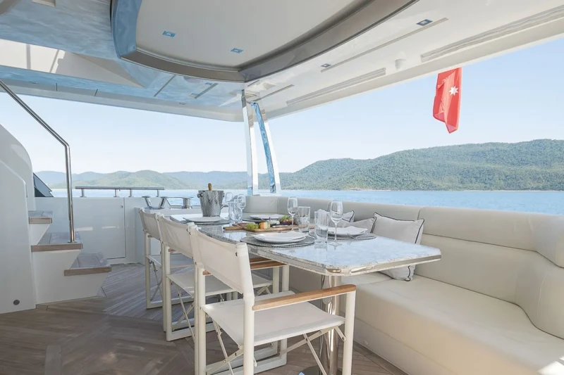 Makoro has been designed to comfortably accommodate up to 8 guests in 4 suites. She is also capable of carrying up to 2 crew onboard to ensure a relaxed luxury yacht experience.