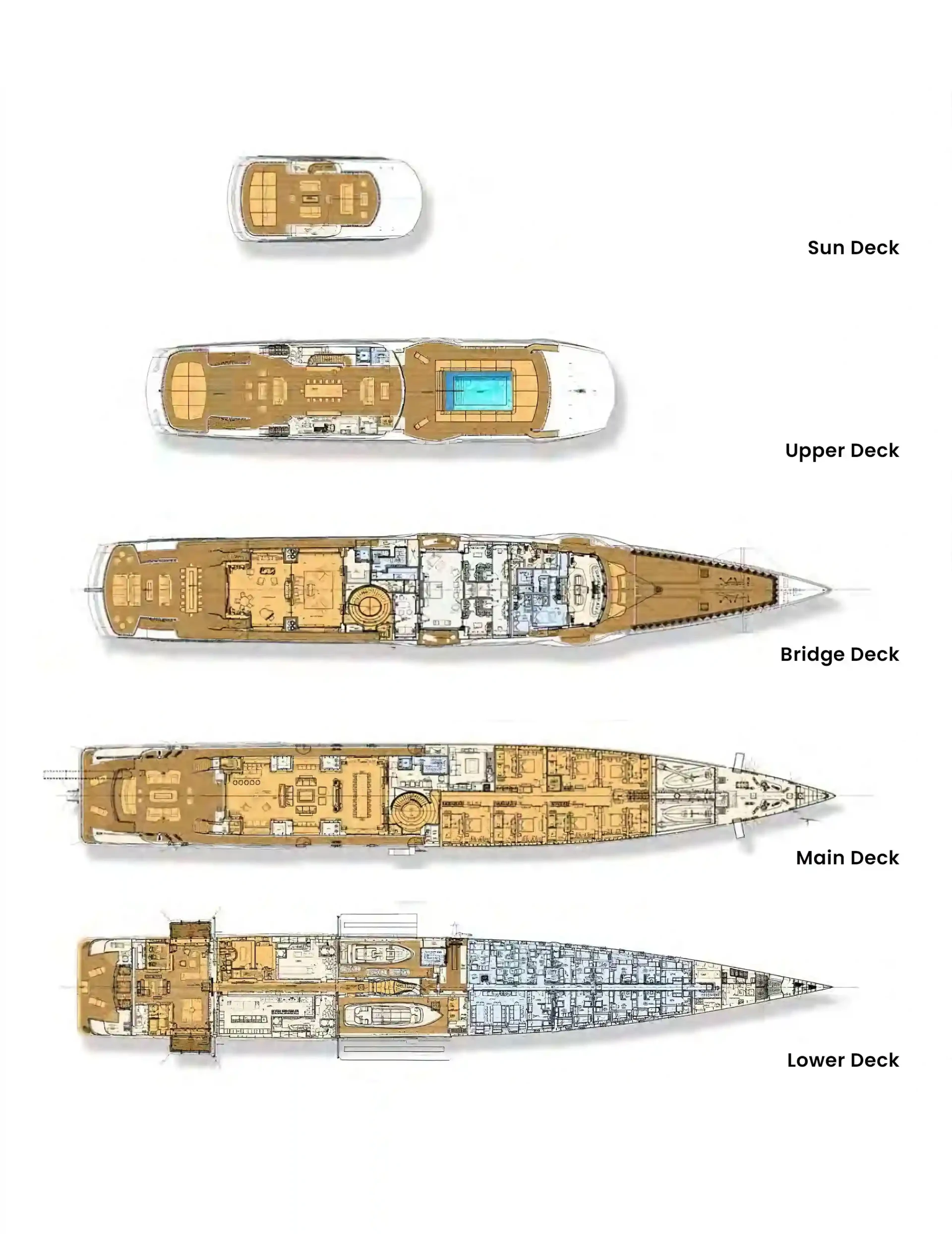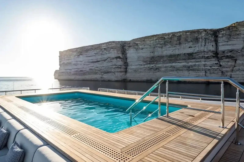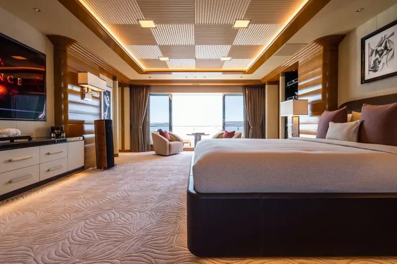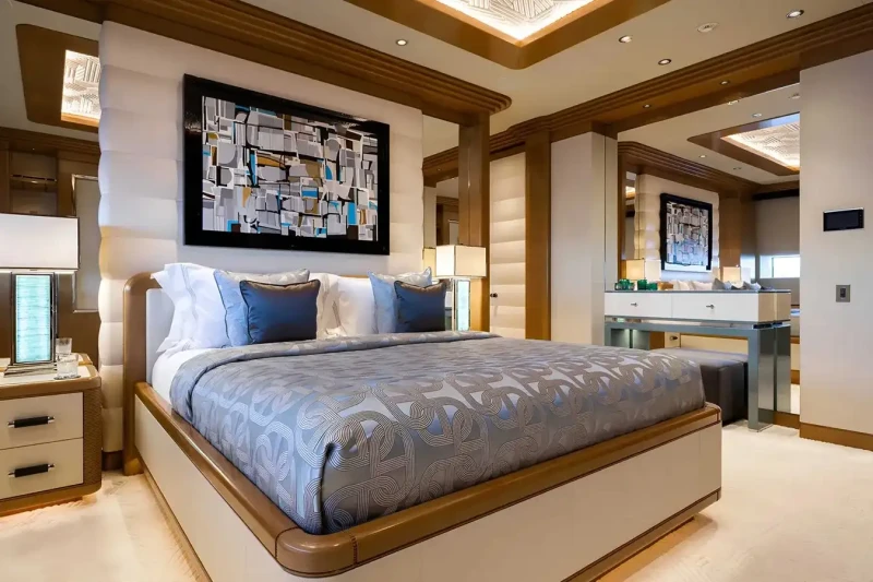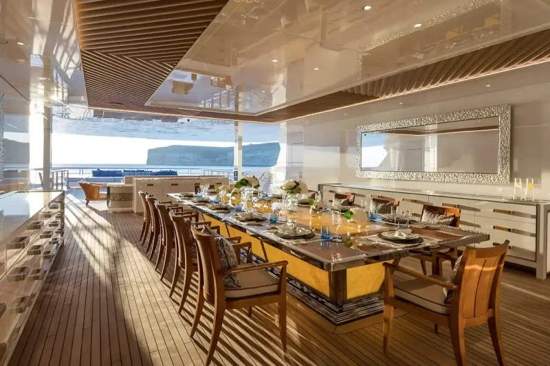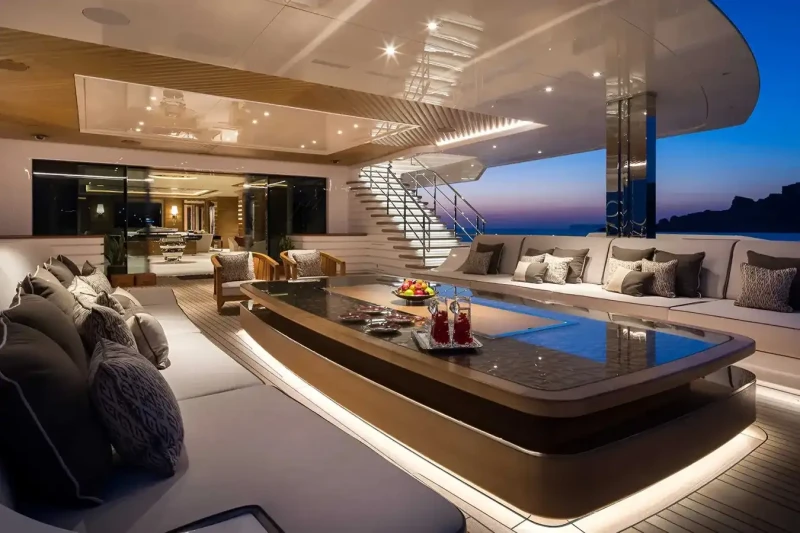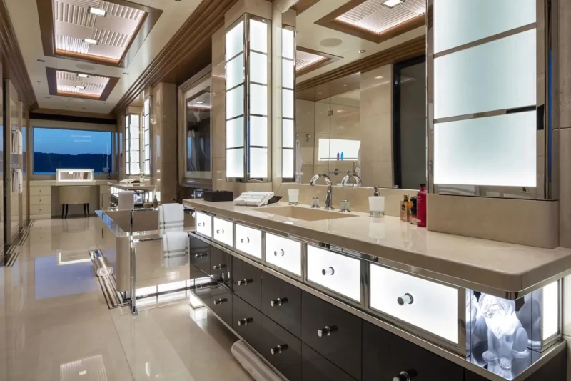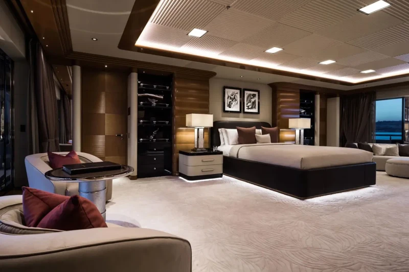 Mar has been designed to comfortably accommodate up to 16 guests in 8 suites comprising seven VIP cabins. She is also capable of carrying up to 34 crew onboard to ensure a relaxed luxury yacht experience.