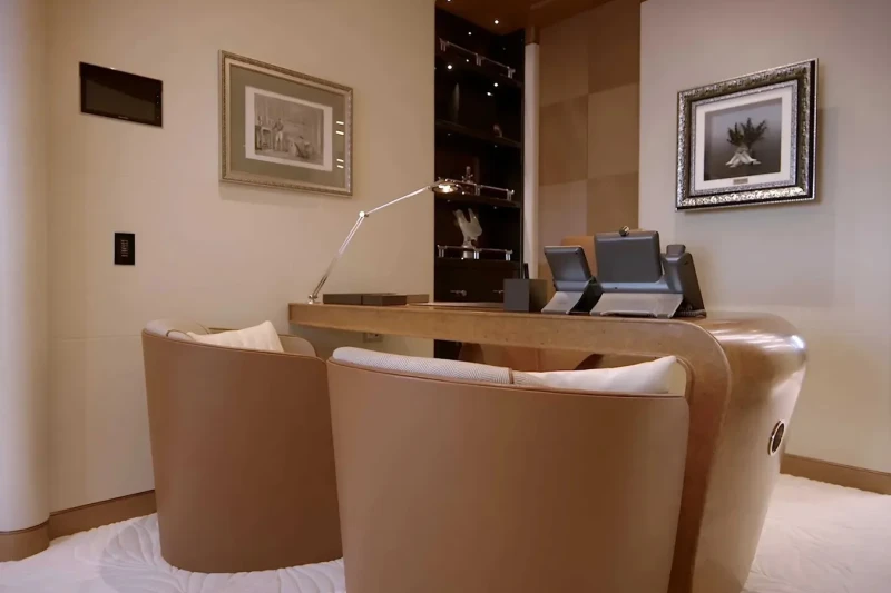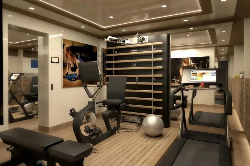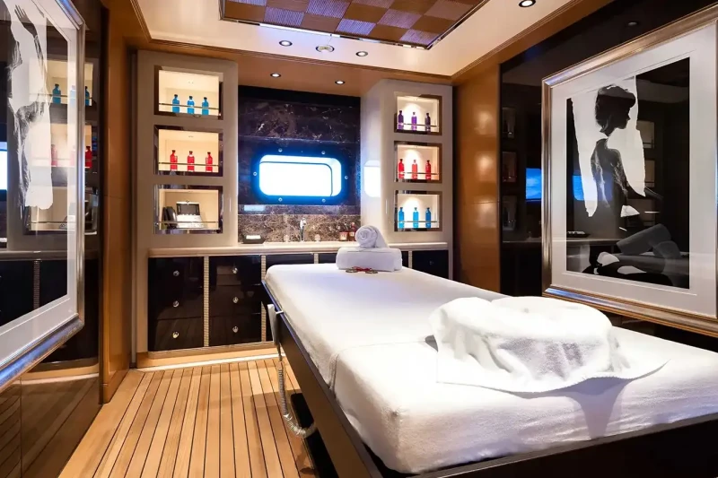 Her features include piano, spa, beauty salon, satellite communications, beach club, gym, WiFi and air conditioning.