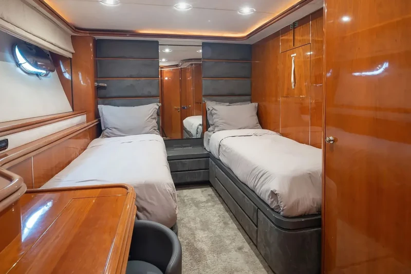 Mi Alma is great for families thanks to her child-friendly setup. Built in 2001, She offers guest accommodation for up to 10 guests with a layout comprising a master suite located on the main deck, one VIP cabin and two twin cabins. There are 8 beds in total, including 2 queen, 4 singles and 2 pullmans. She is also capable of carrying up to 6 crew onboard to ensure a relaxed luxury yacht charter experience.
