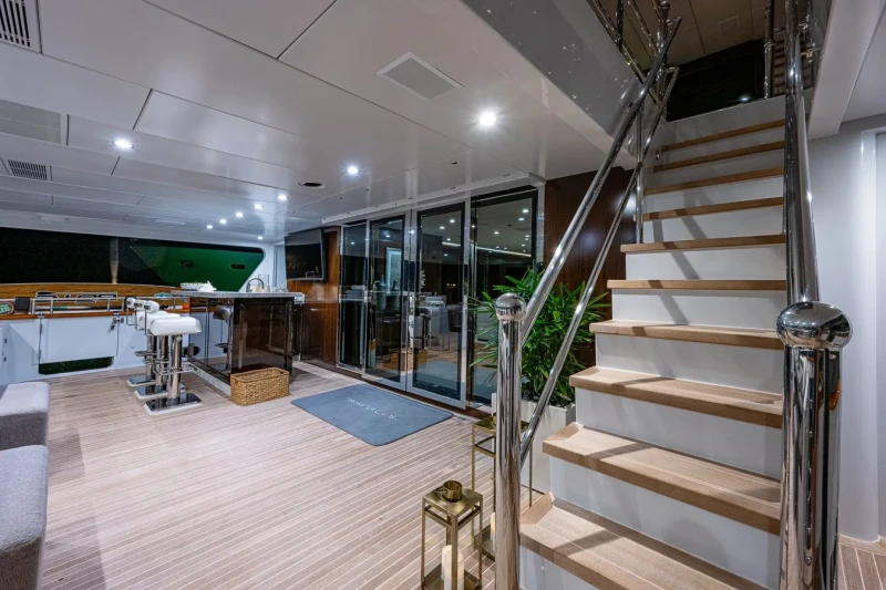 Missing Link has been designed to comfortably accommodate up to 10 guests in 5 suites. She is also capable of carrying up to 8 crew onboard to ensure a relaxed luxury yacht experience.