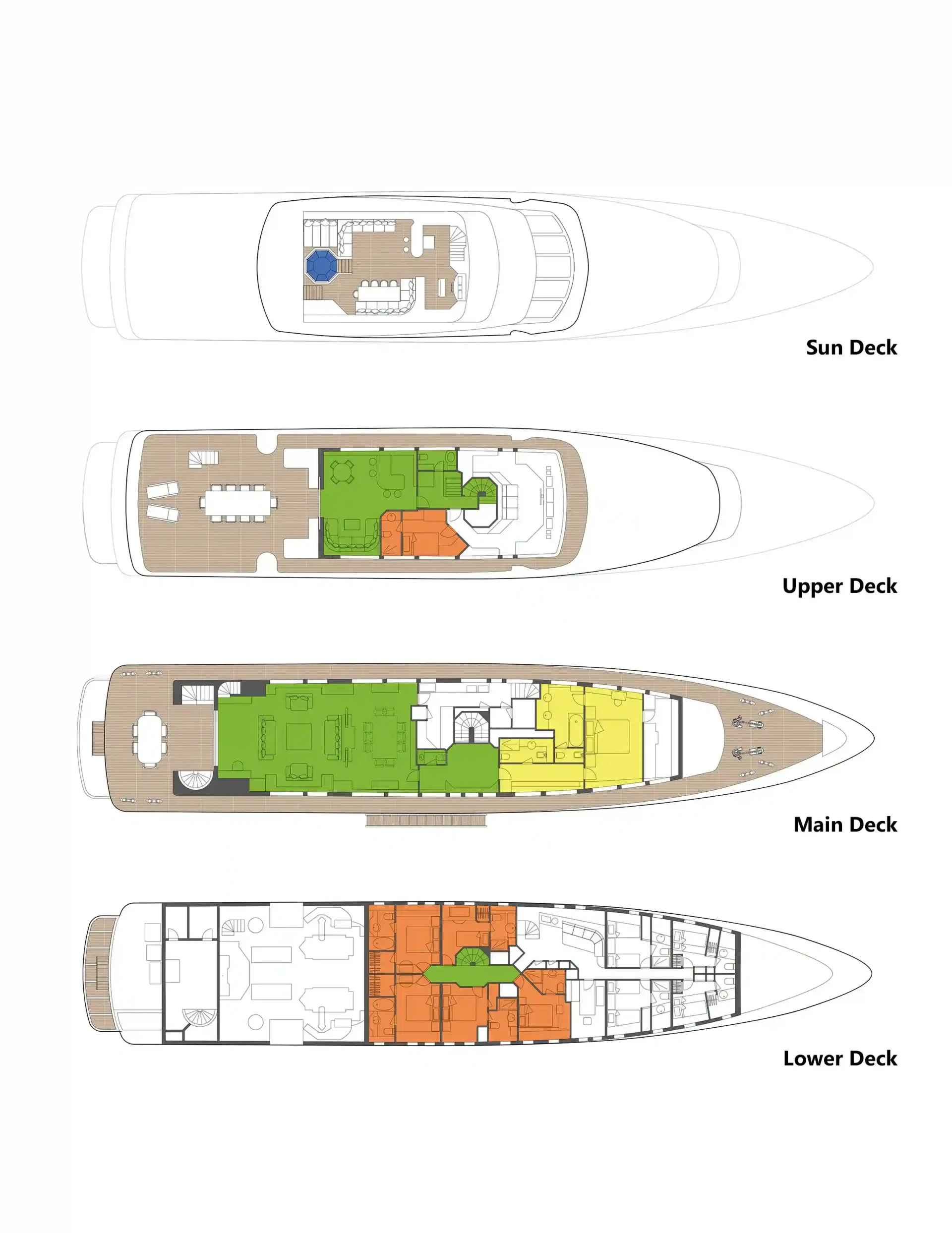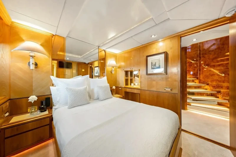 Mistress offers guest accommodation for up to 11 guests in 6 suites comprising three double cabins, two twin cabins and one single cabin. She is also capable of carrying up to 9 crew onboard to ensure a relaxed luxury yacht charter experience.