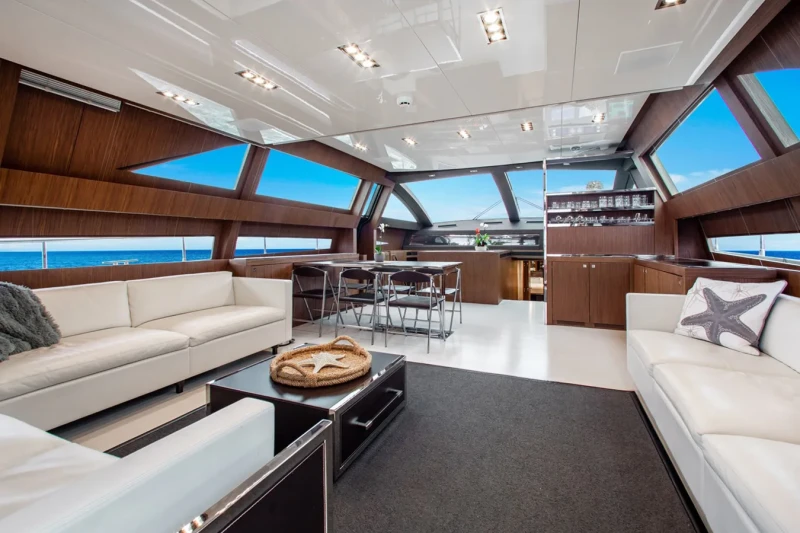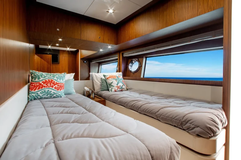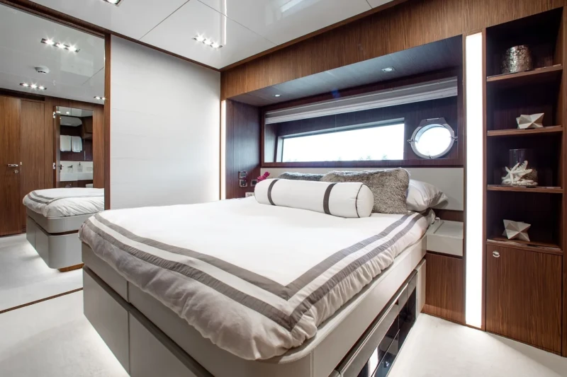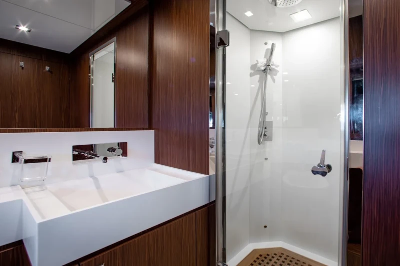 Movin Day has been designed to comfortably accommodate up to 8 guests in 4 suites comprising one VIP cabin. She is also capable of carrying up to 2 crew onboard to ensure a relaxed luxury yacht experience.