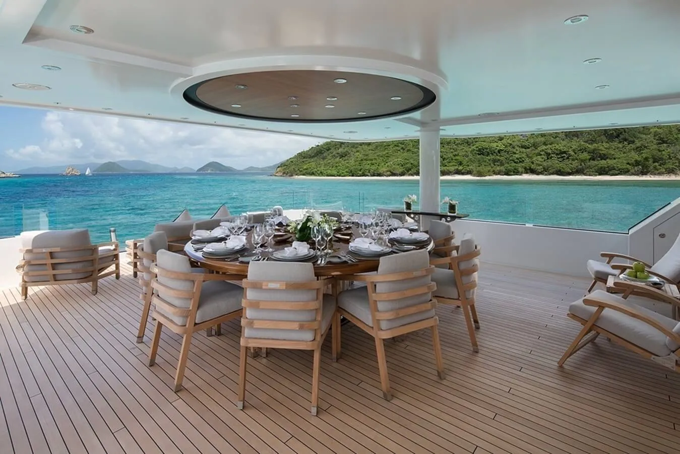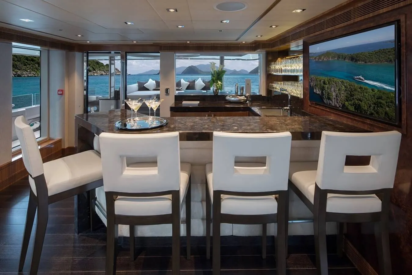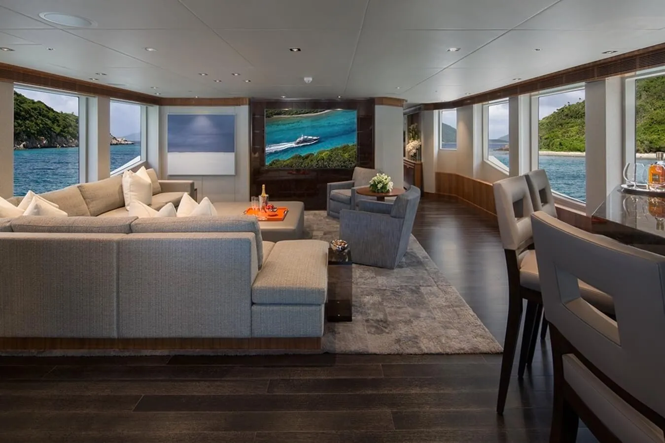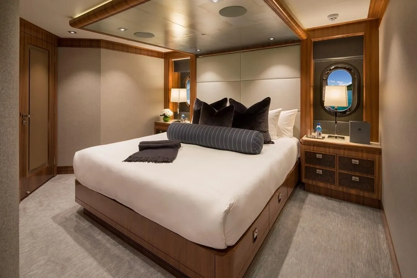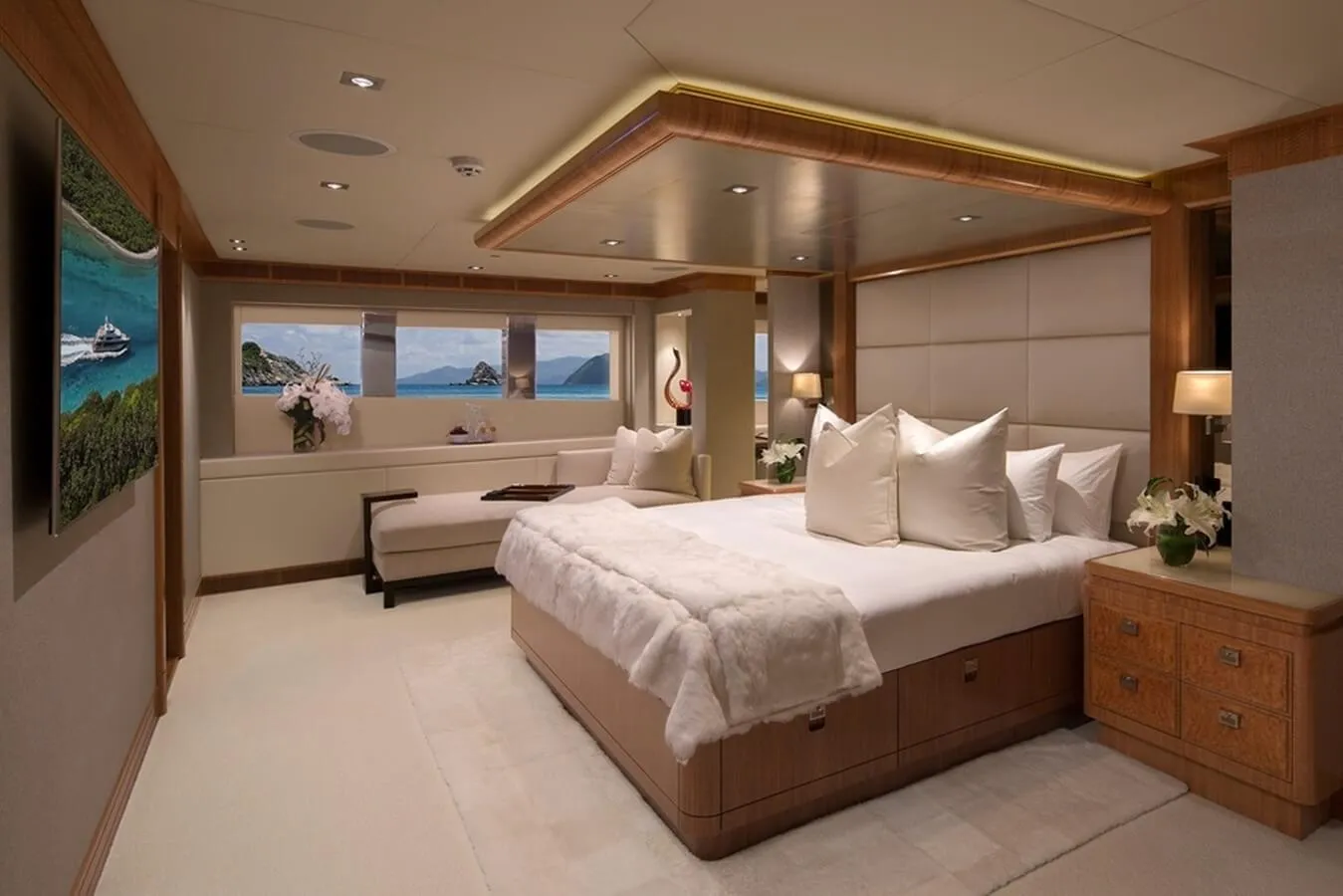 Muchos Mas is great for families thanks to her child-friendly setup. Built in 2016, She offers guest accommodation for up to 10 guests with a layout comprising a master suite, two double cabins and two cabins that can operate as twins or doubles. The supremely spacious full beam master suite incorporates its own study. The bed configuration includes 3 king and 1 pullman. She is also capable of carrying up to 9 crew onboard to ensure a relaxed luxury yacht charter experience.