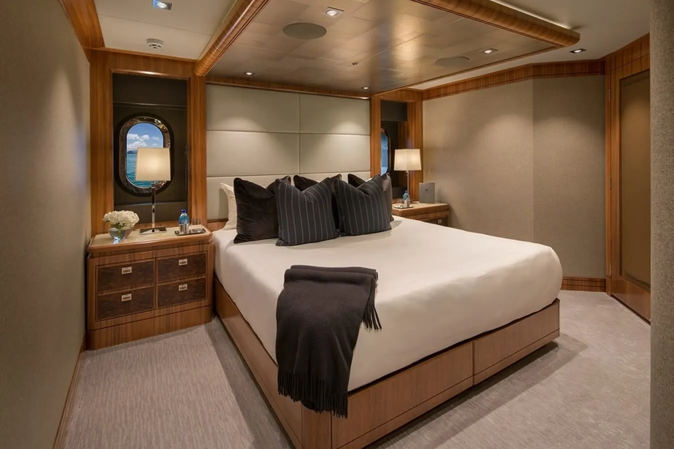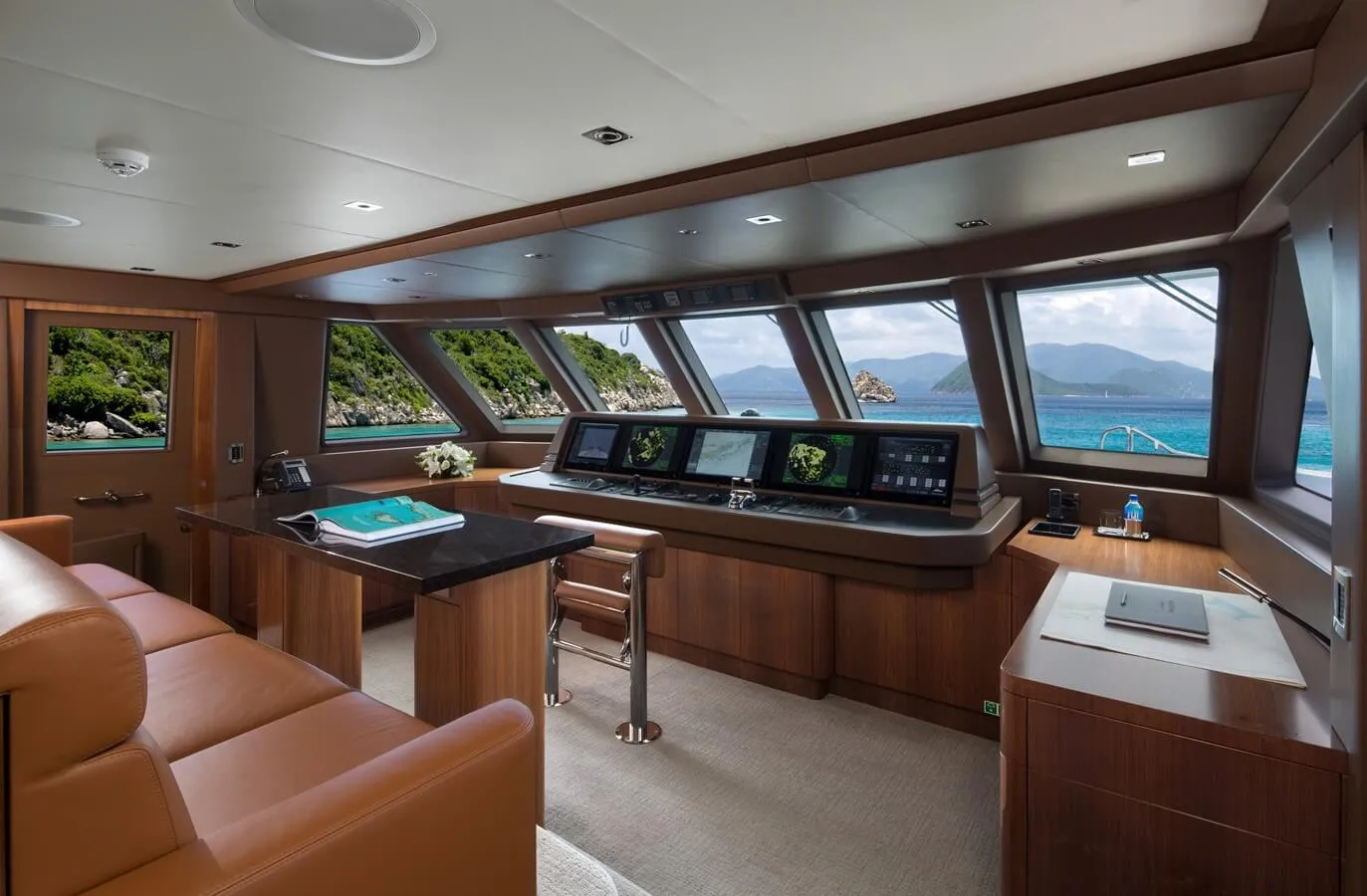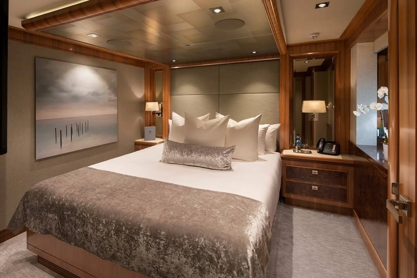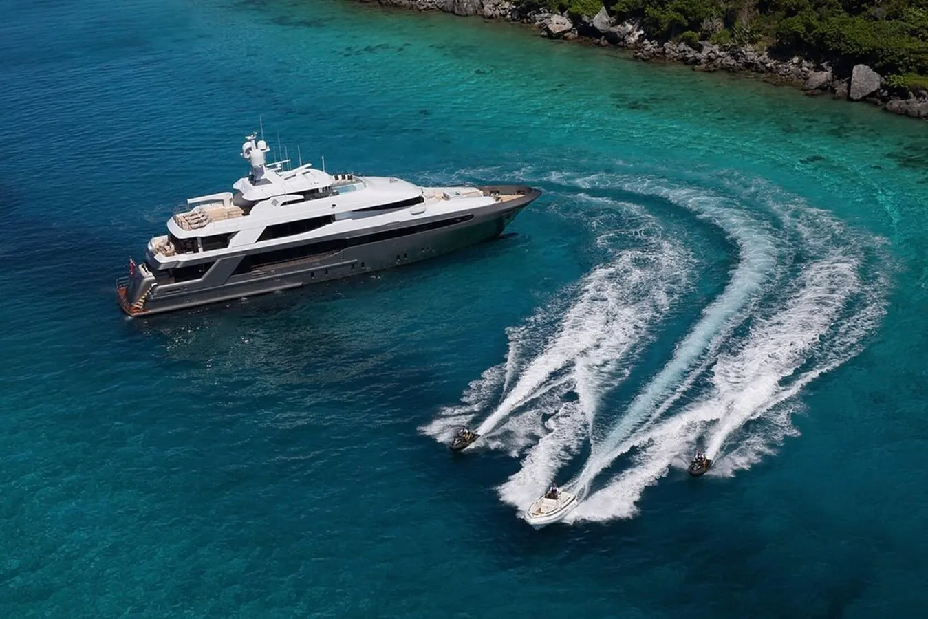 Muchos Mas is great for families thanks to her child-friendly setup. Built in 2016, She offers guest accommodation for up to 10 guests with a layout comprising a master suite, two double cabins and two cabins that can operate as twins or doubles. The supremely spacious full beam master suite incorporates its own study. The bed configuration includes 3 king and 1 pullman. She is also capable of carrying up to 9 crew onboard to ensure a relaxed luxury yacht charter experience.