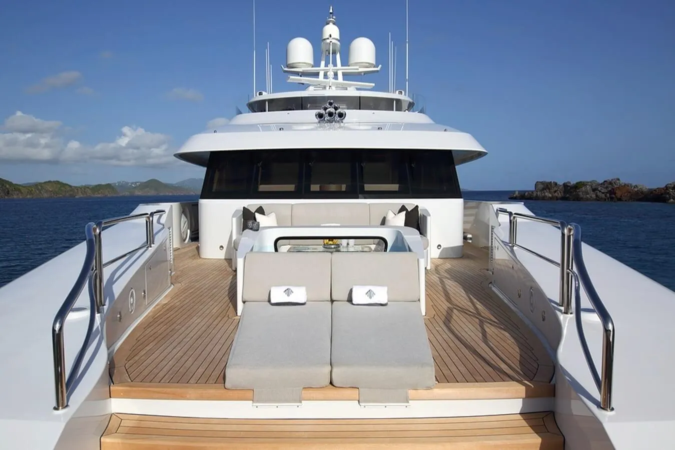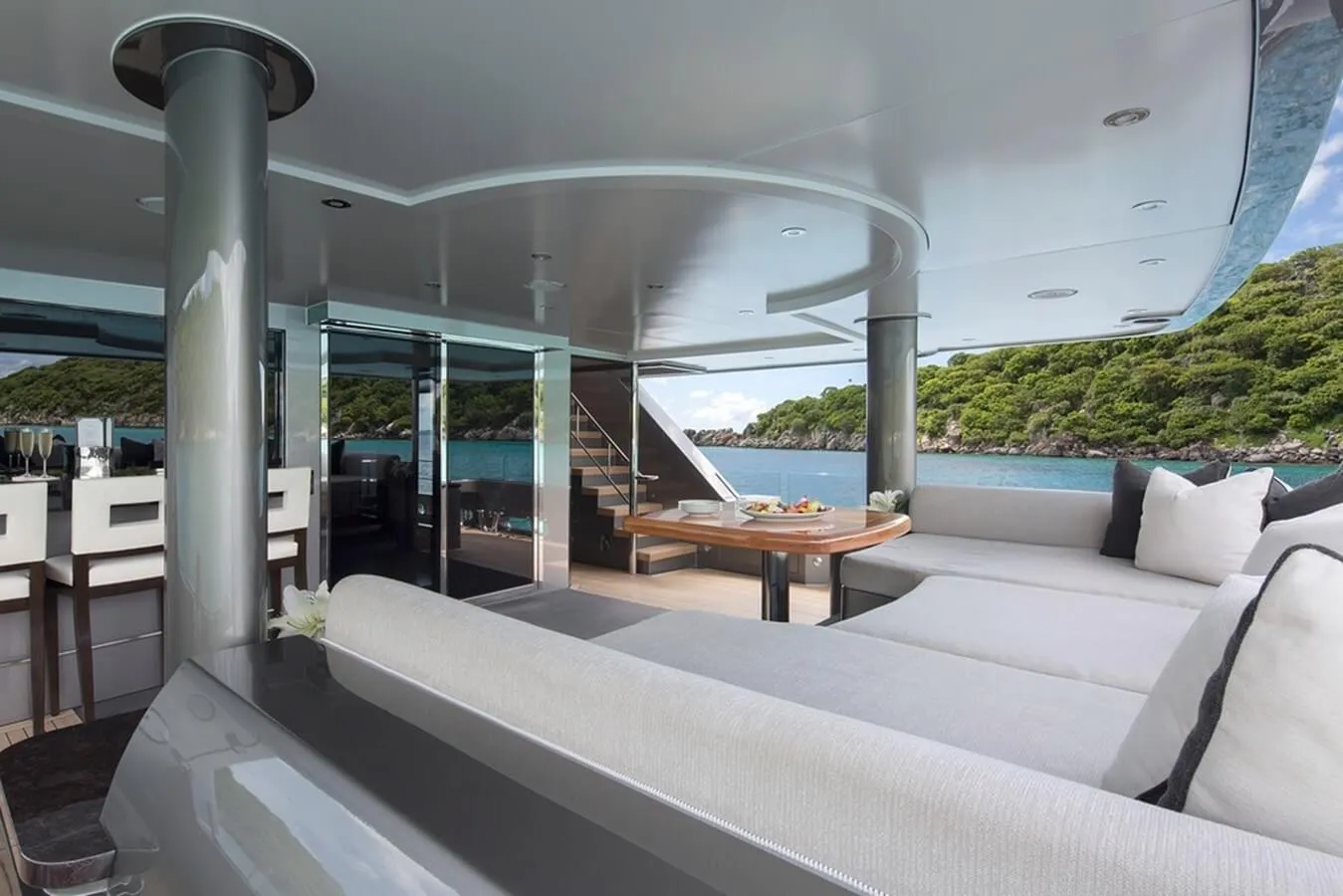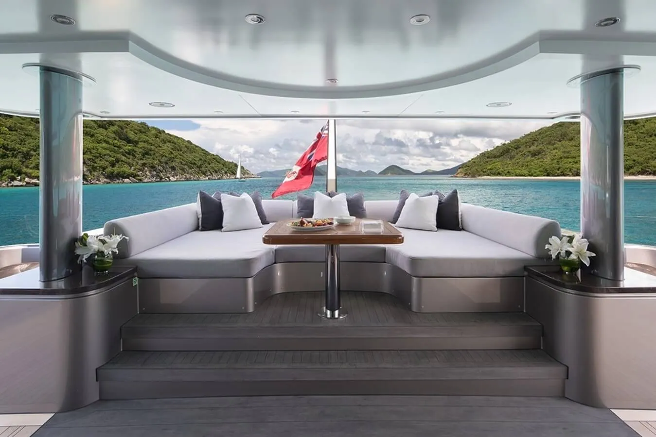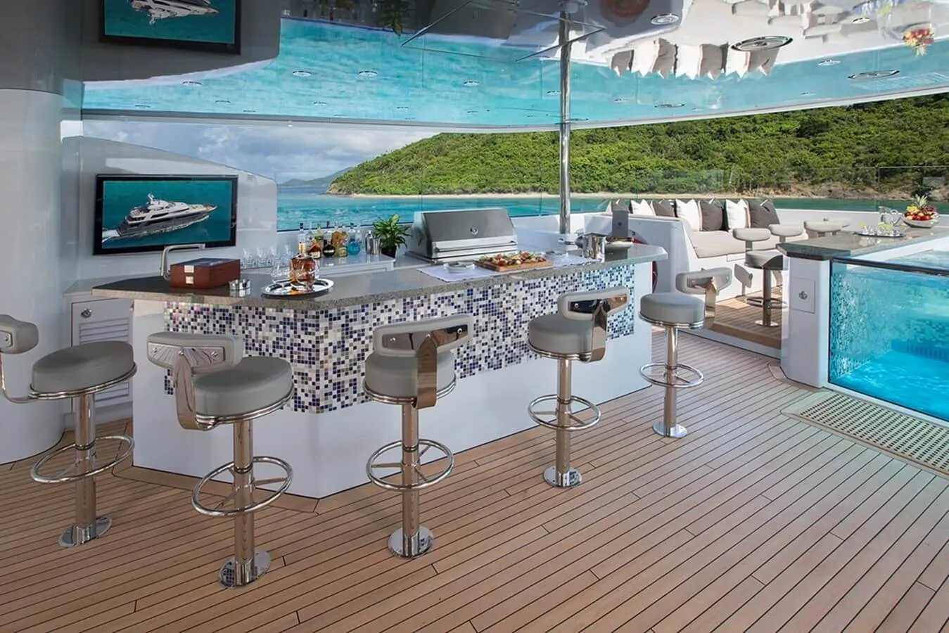 On your charter, you'll find plenty to keep you busy and entertained such as a beach club for you to relax on the edge of the water. Sit back with a glass of champagne in the deck jacuzzi.