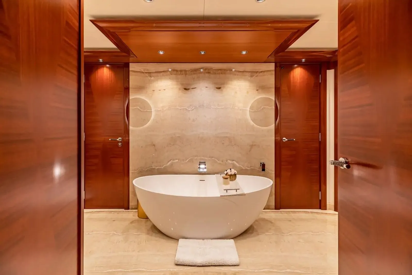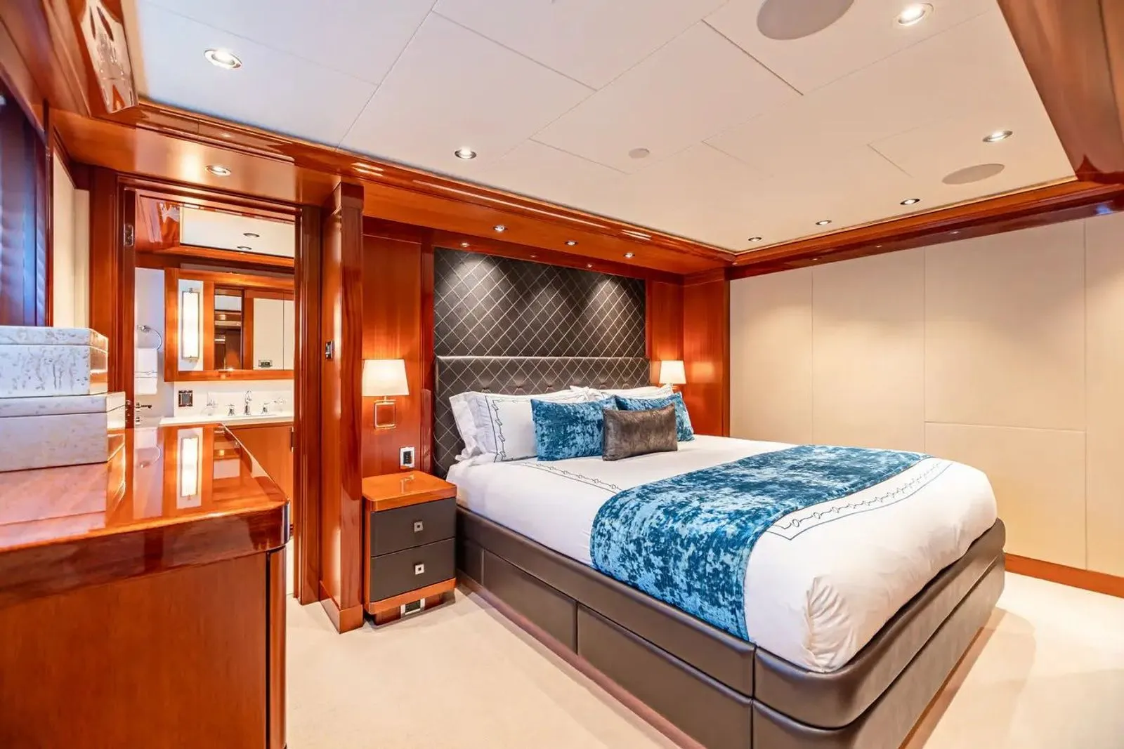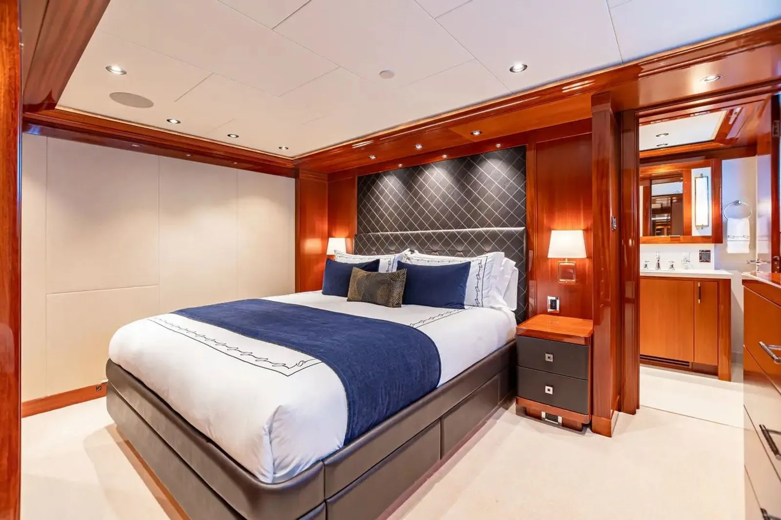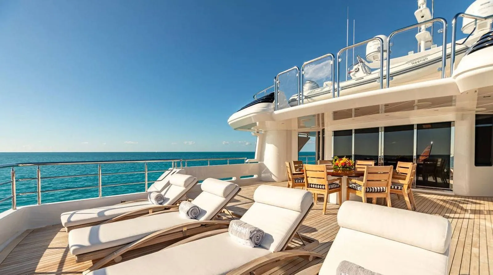 Built in 2020, Neenah offers guest accommodation for up to 12 guests in 6 suites comprising a master suite located on the main deck, one VIP cabin, three double cabins and one twin cabin. The bed configuration includes 2 king, 3 queen and 2 singles. She is also capable of carrying up to 9 crew onboard to ensure a relaxed luxury yacht charter experience.