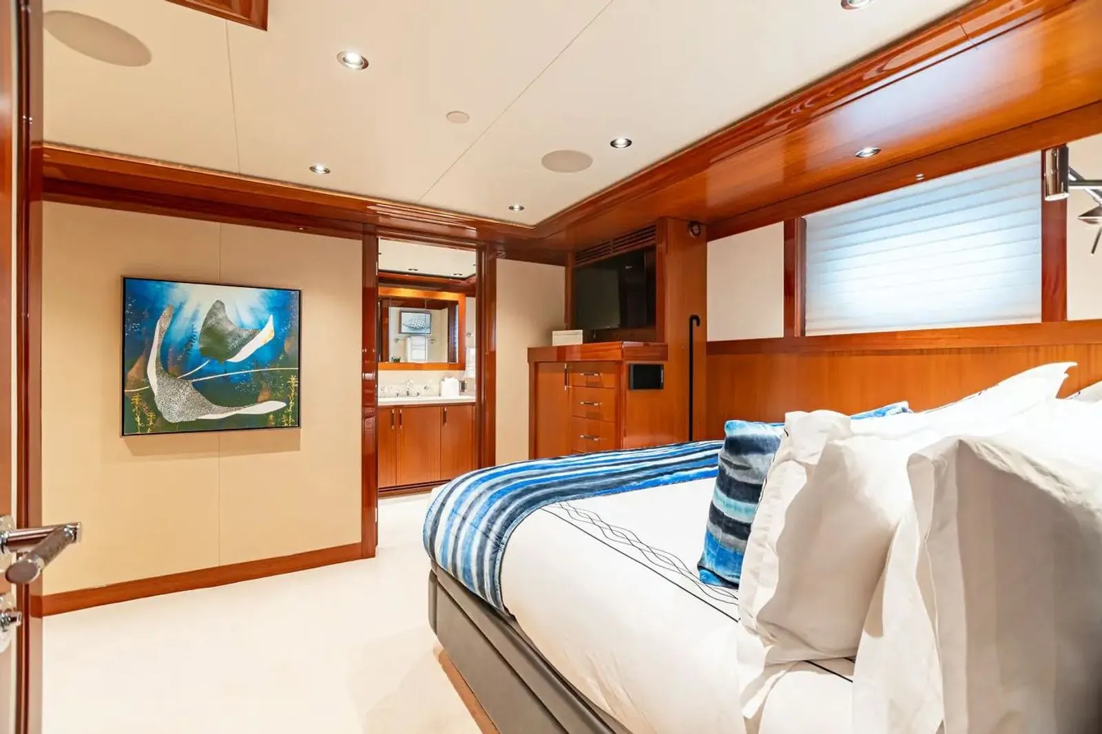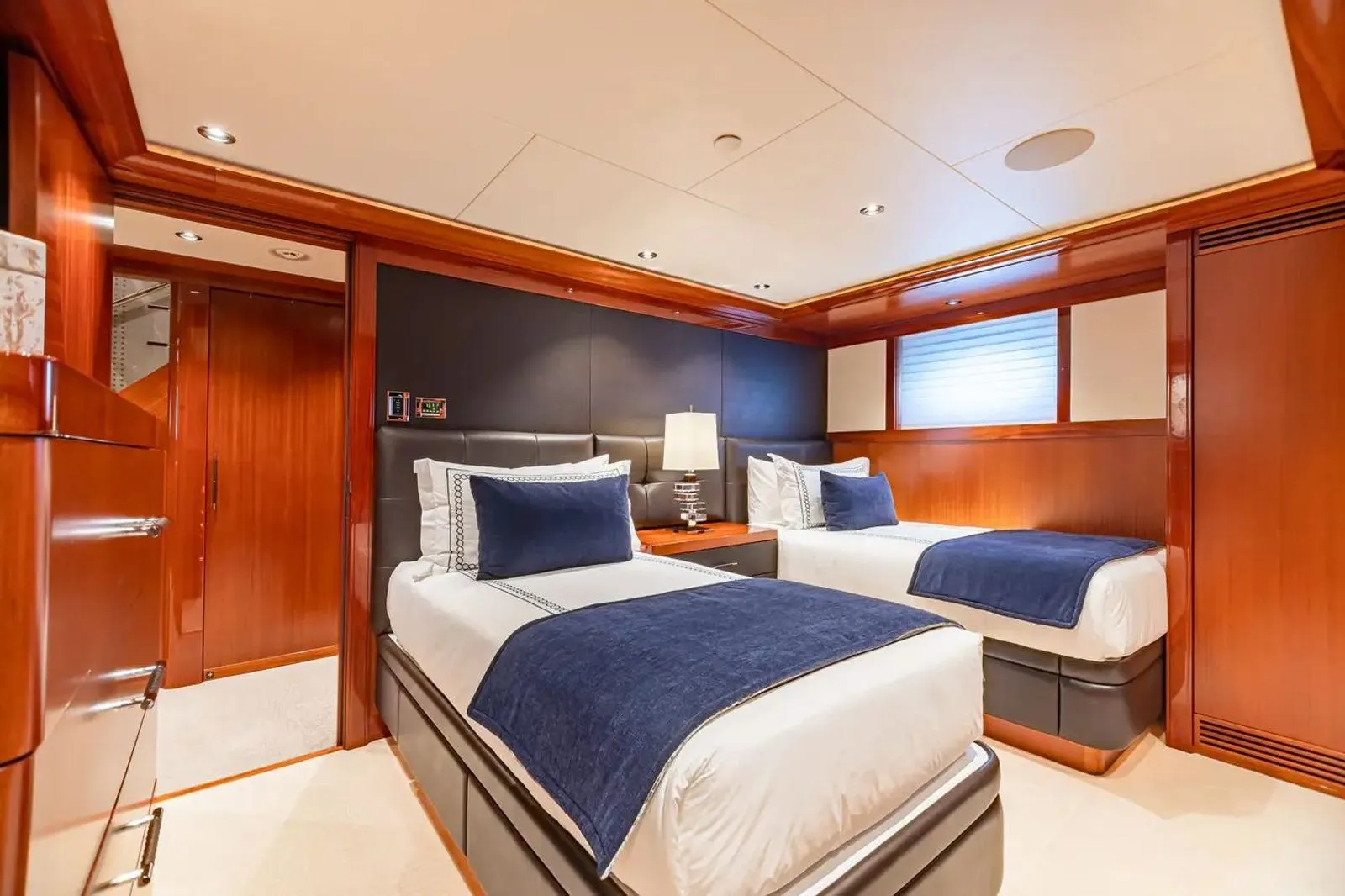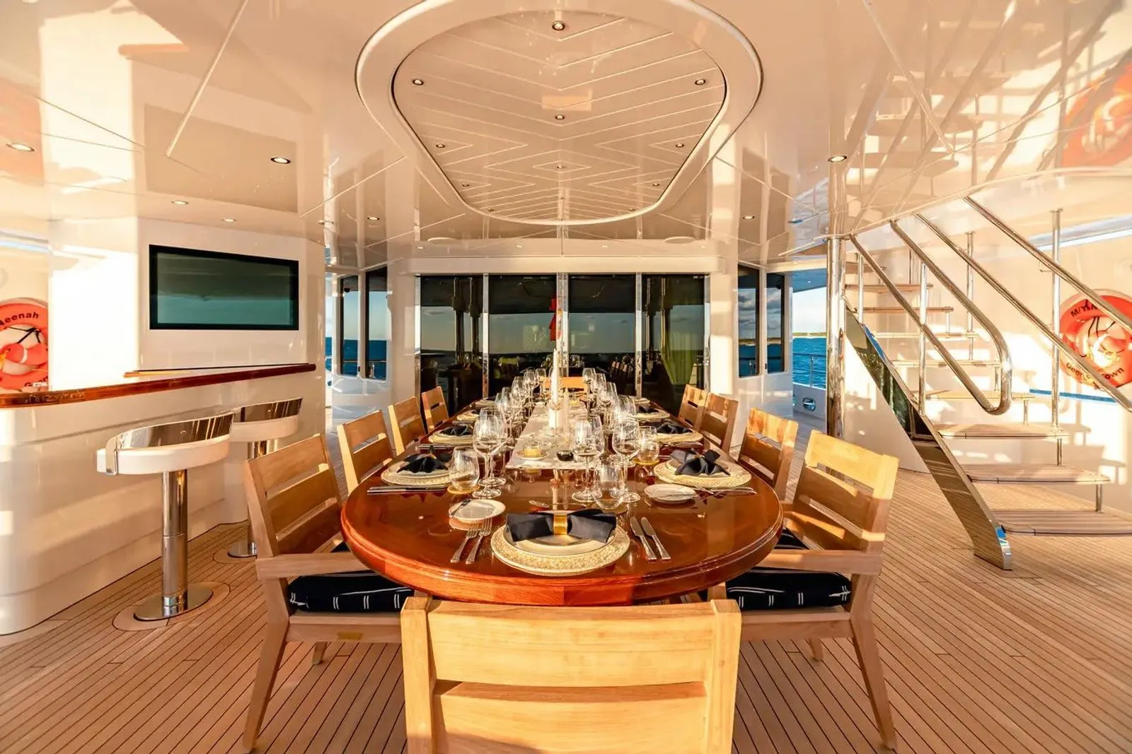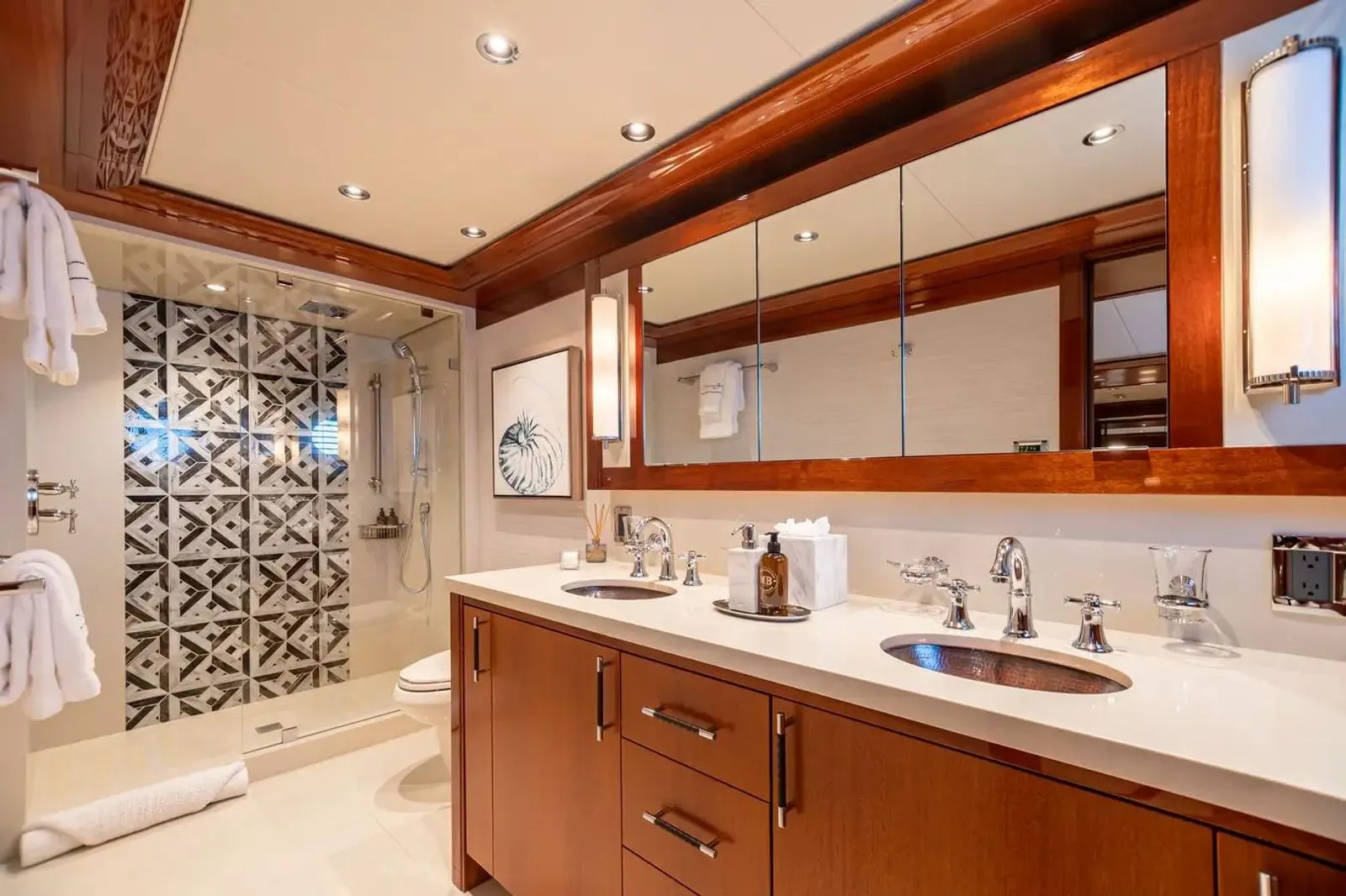 Built in 2020, Neenah offers guest accommodation for up to 12 guests in 6 suites comprising a master suite located on the main deck, one VIP cabin, three double cabins and one twin cabin. The bed configuration includes 2 king, 3 queen and 2 singles. She is also capable of carrying up to 9 crew onboard to ensure a relaxed luxury yacht charter experience.