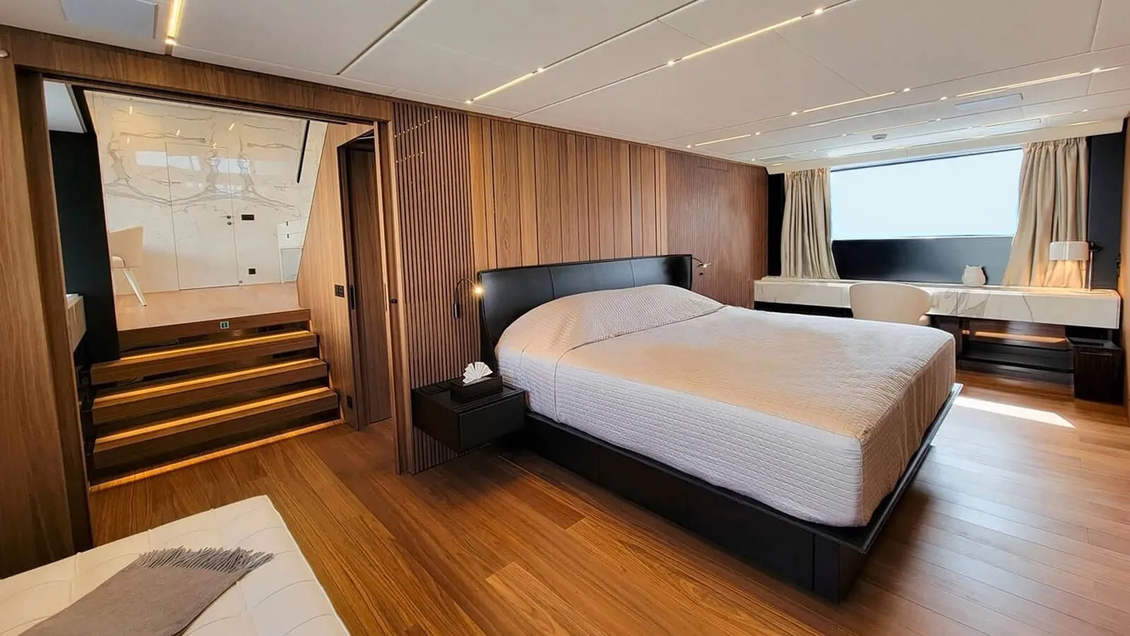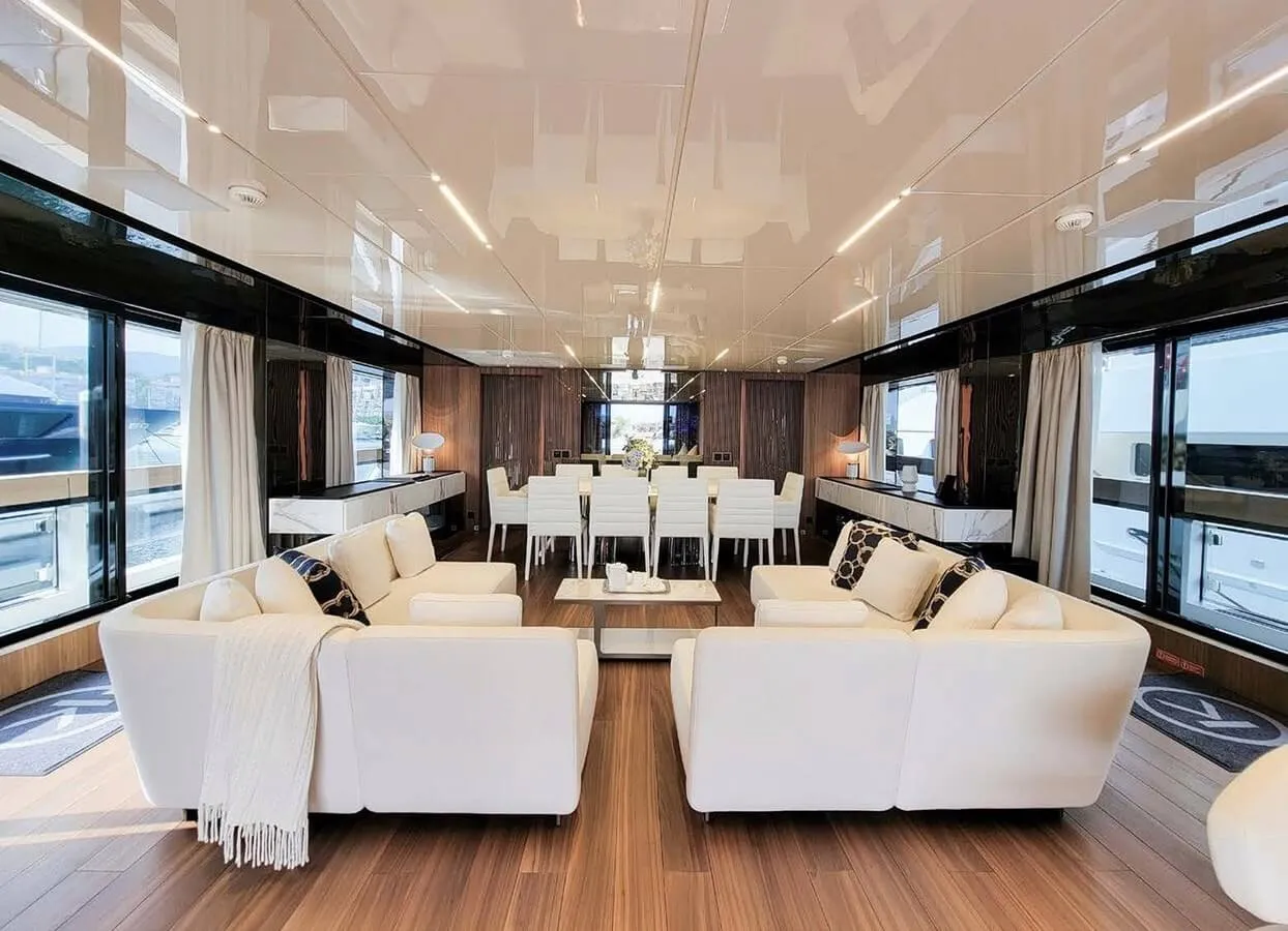 Her features include a spa, gym, deck jacuzzi, WiFi and air conditioning.