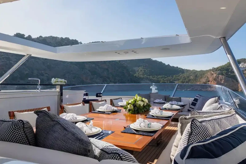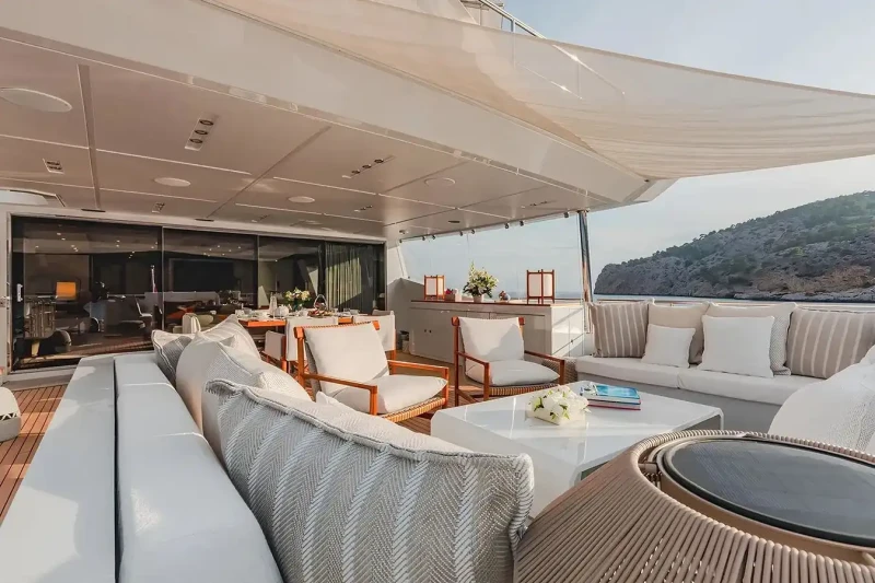 Her features include beach club, deck jacuzzi, WiFi and air conditioning.