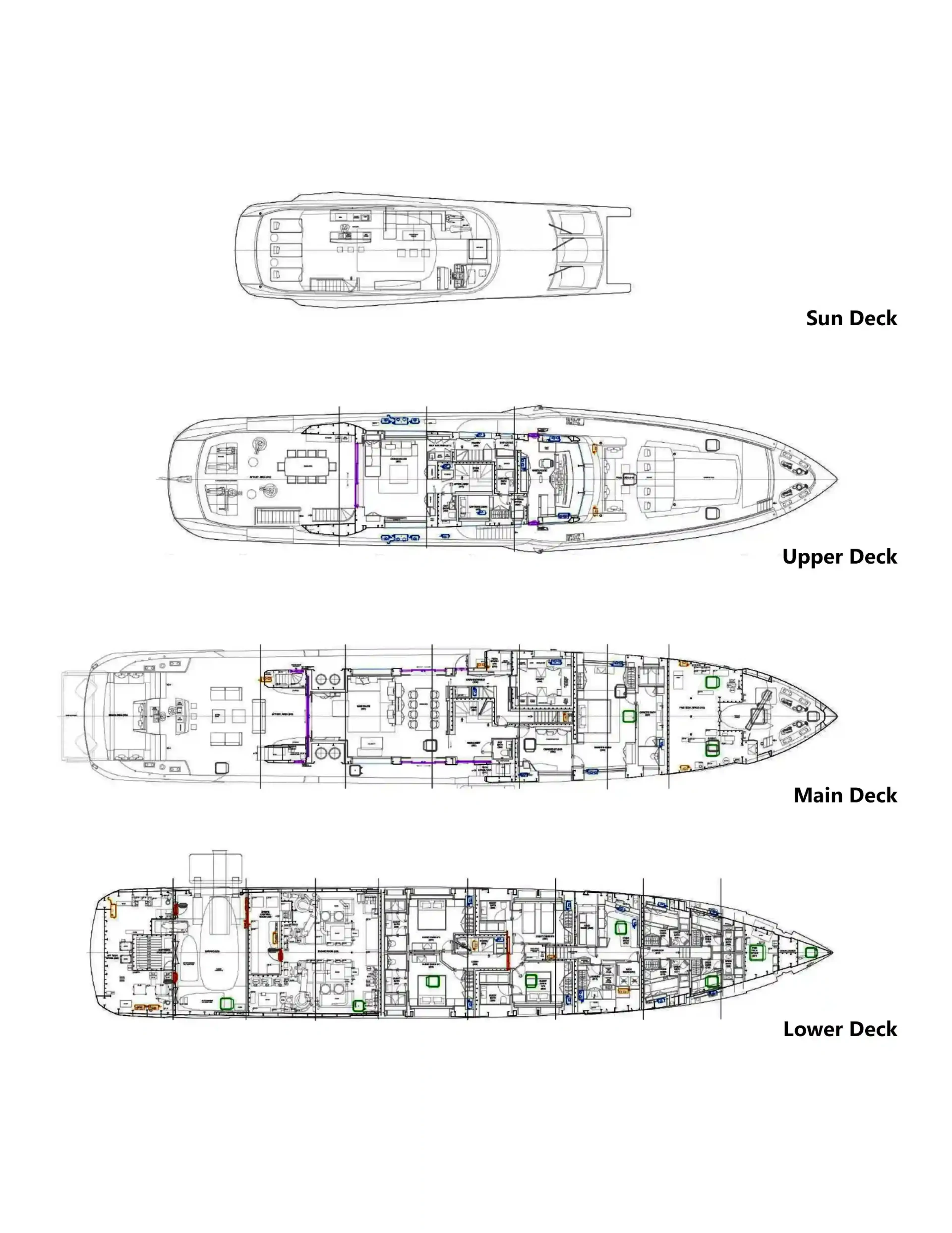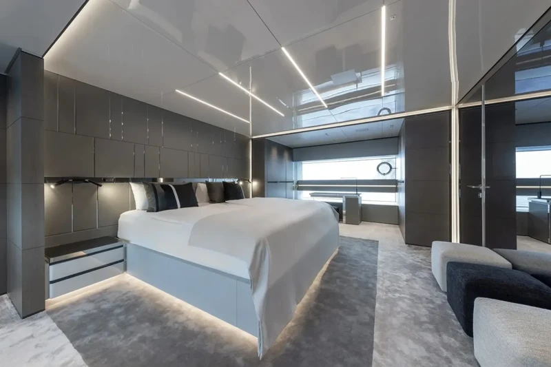 No Stress Two has been designed to comfortably accommodate up to 10 guests in 5 suites comprising two VIP cabins. She is also capable of carrying up to 9 crew onboard to ensure a relaxed luxury yacht experience.