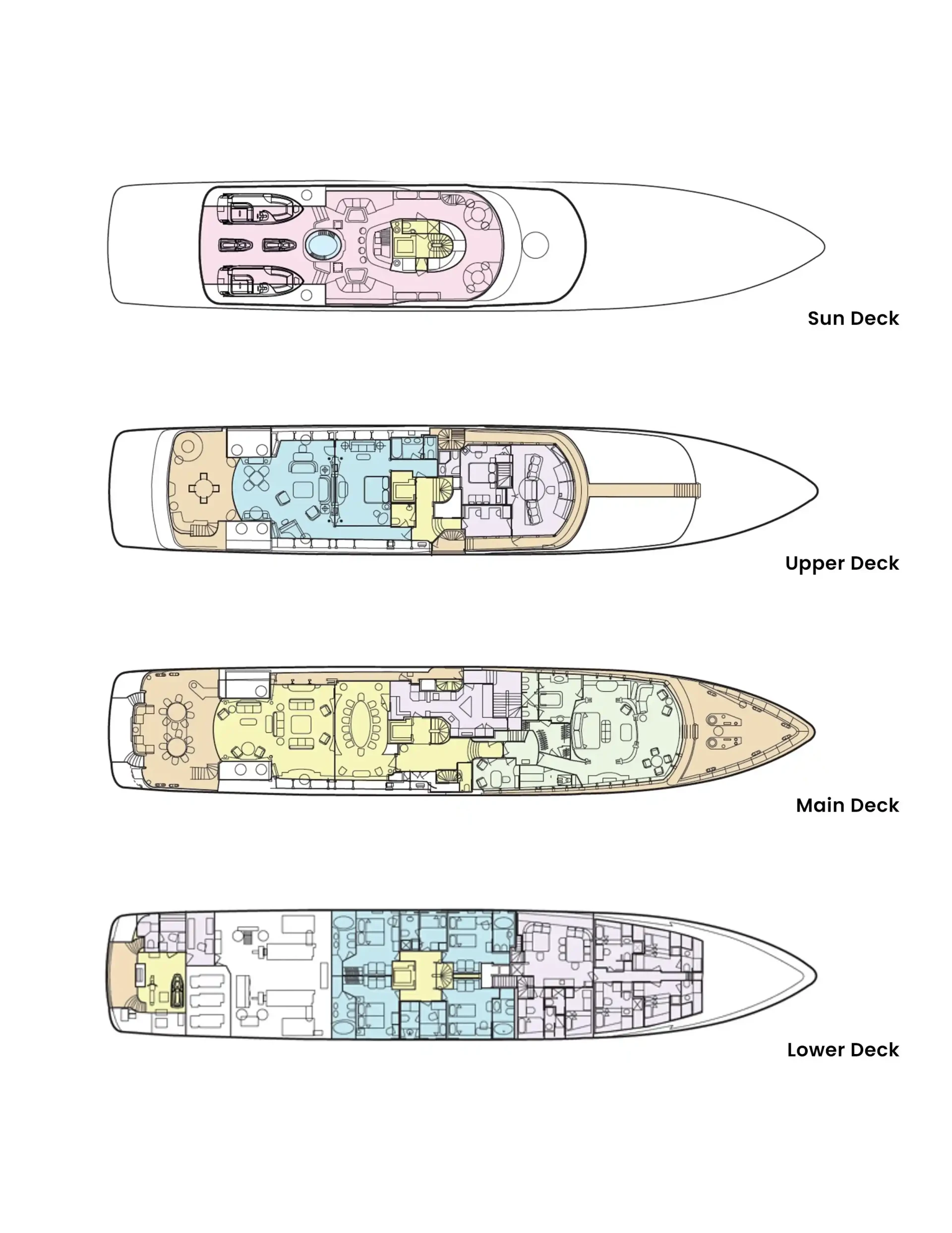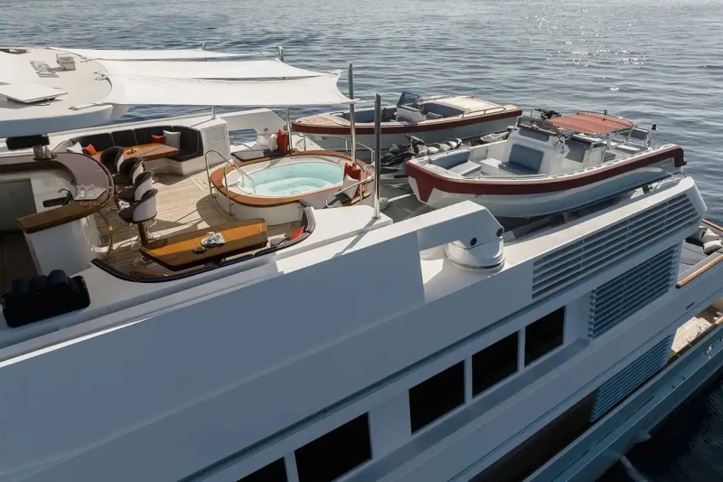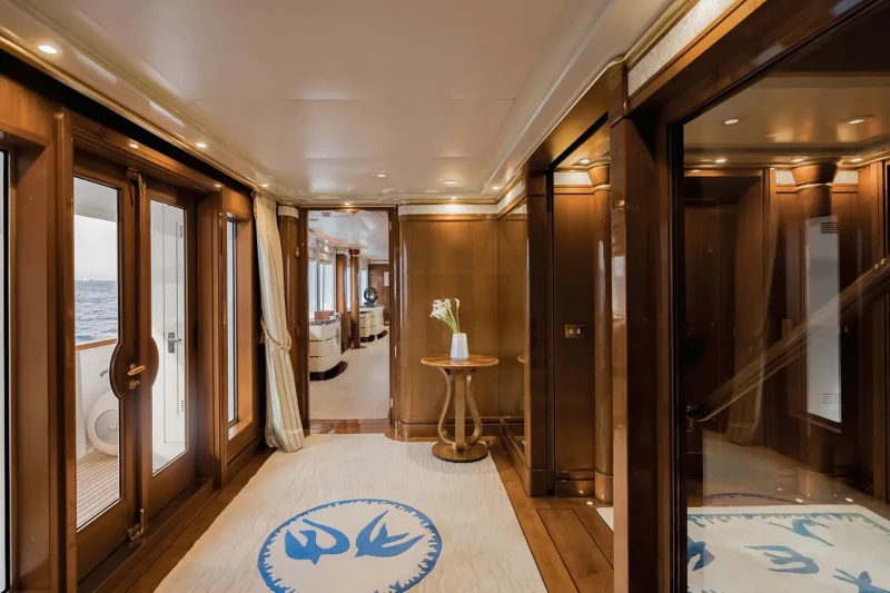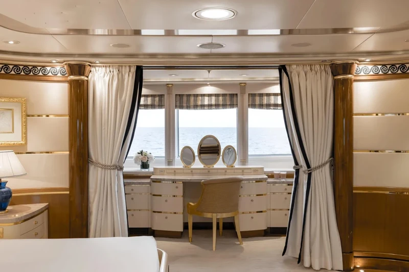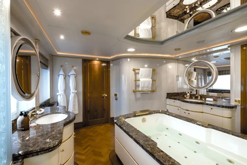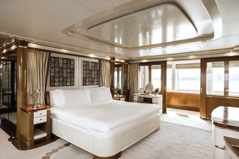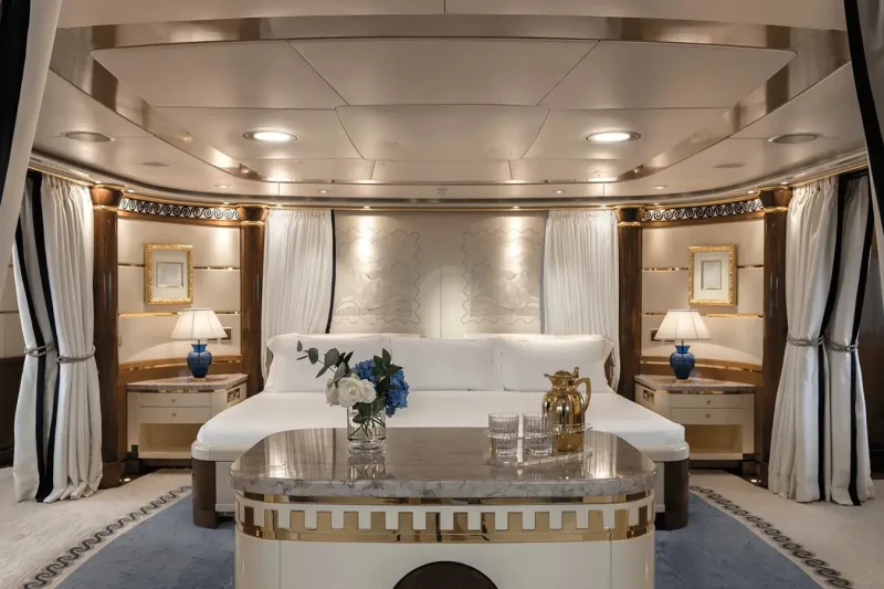 Olympus offers guest accommodation for up to 12 guests in 8 suites comprising a master suite located on the main deck, one VIP cabin, two double cabins, two twin cabins and two single cabins. She is also capable of carrying up to 16 crew onboard to ensure a relaxed luxury yacht charter experience.