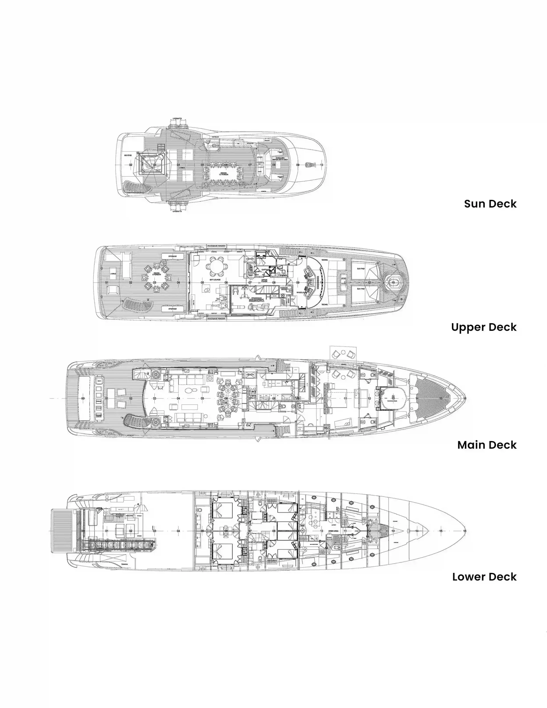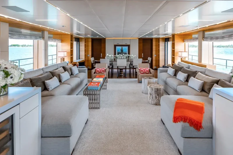 Patience has been designed to comfortably accommodate up to 10 guests in 5 suites. The supremely spacious full beam master suite incorporates its own study. She is also capable of carrying up to 7 crew onboard to ensure a relaxed luxury yacht experience.