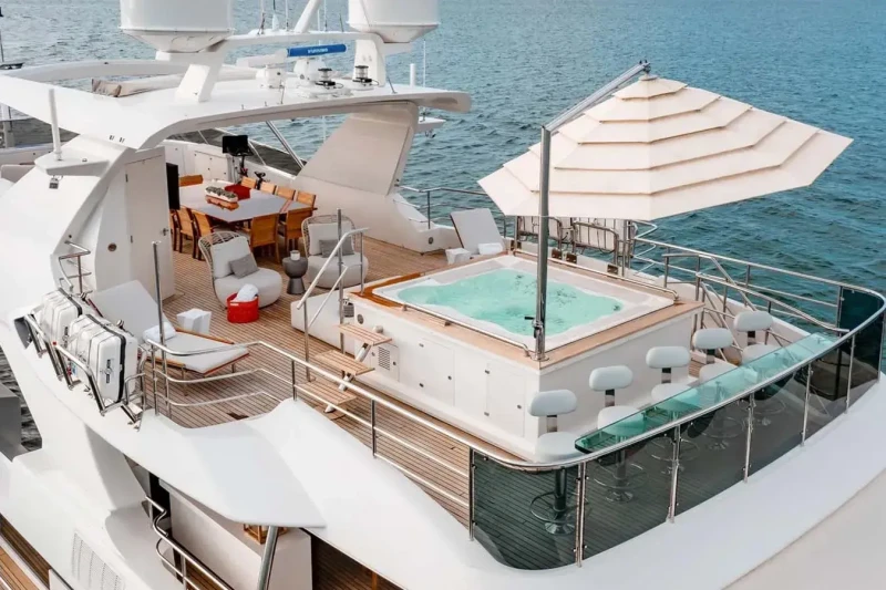 On your charter, you'll find plenty to keep you busy and entertained including a gym with all the latest equipment to maintain your fitness routine. Soak up the bubbles in style in the deck jacuzzi.