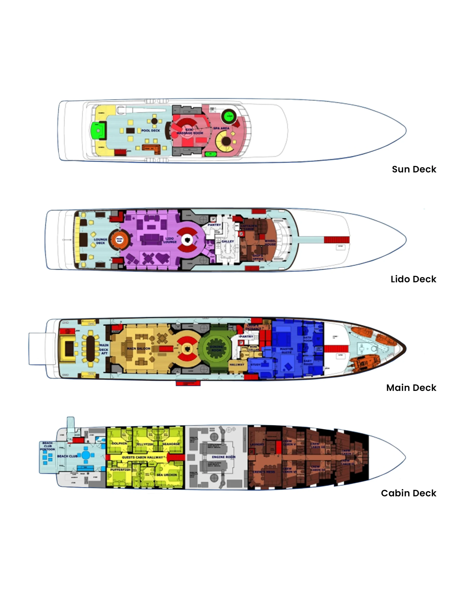 You and your guests can enjoy a variety of experiences on Pegasus including a gym with all the latest equipment to maintain your fitness routine. Retreat to the deck jacuzzi and soak up the scenery.