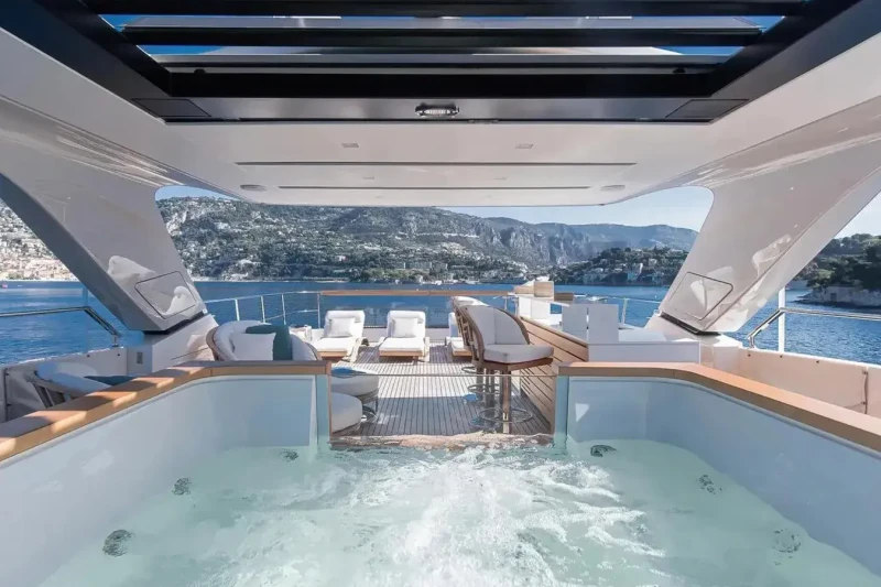 Keeping comfortable and entertained on Premura is easy thanks to the available amenities including a deck jacuzzi, perfect to enjoy the scenery with your favourite drink in hand.