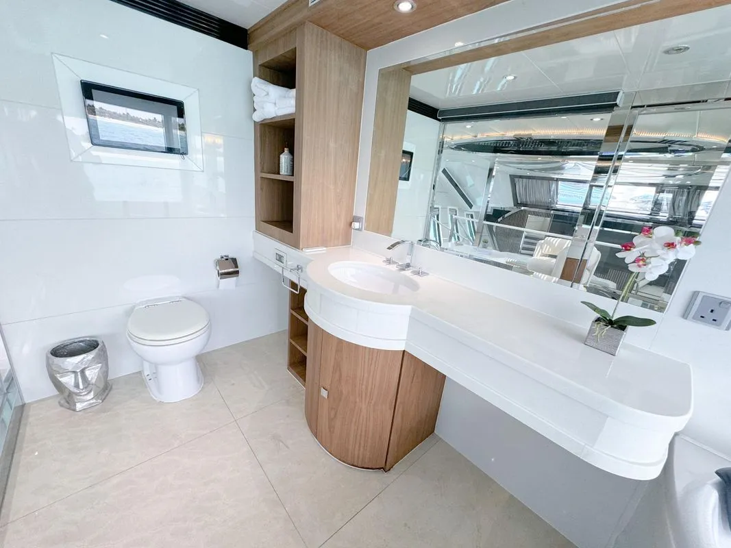 Keeping comfortable and entertained on Privilege is easy thanks to the available amenities, particularly a sauna to help you detox and regenerate. Soak up the bubbles in style in the deck jacuzzi.