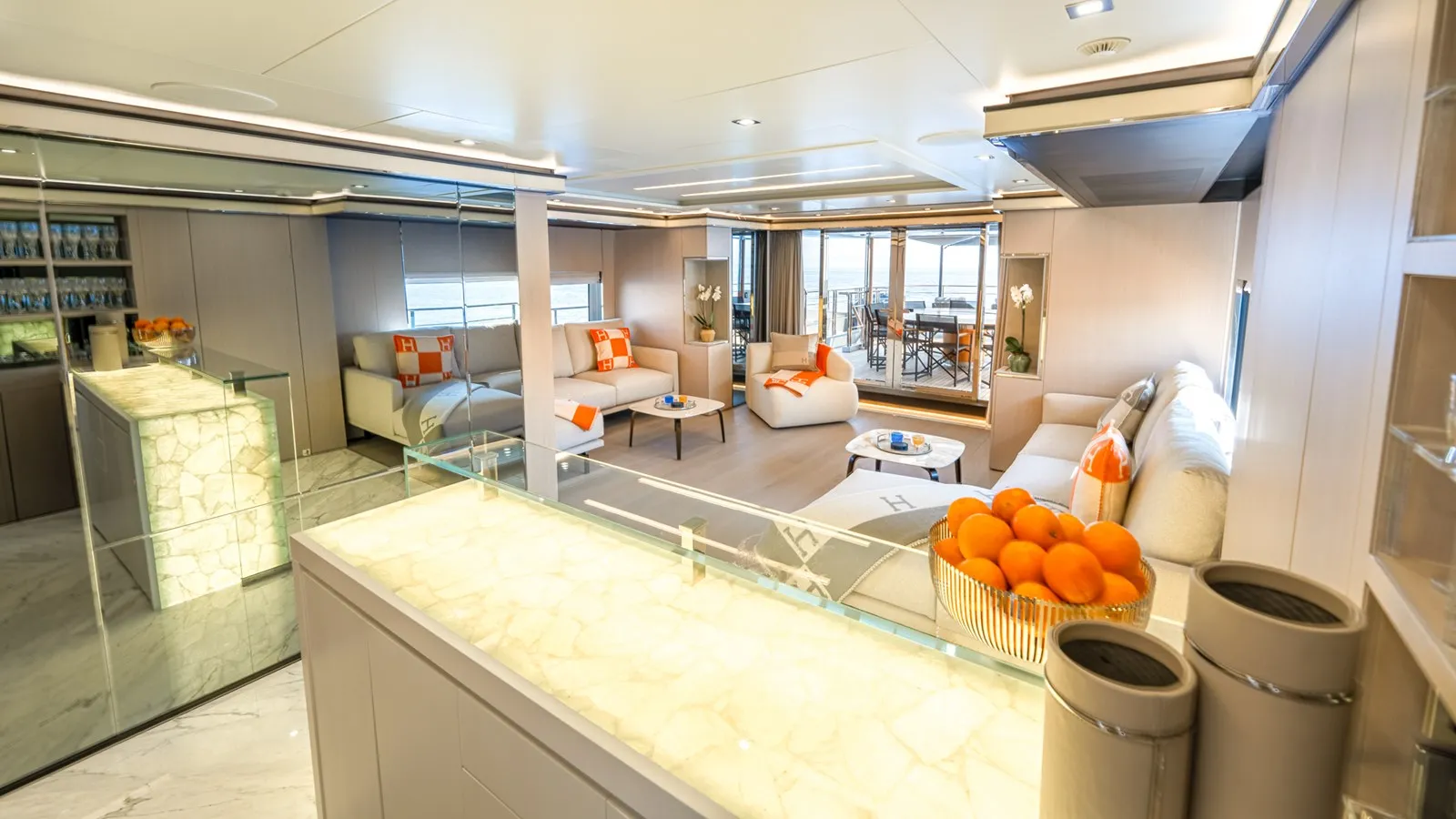 On your charter, you'll find plenty to keep you busy and entertained including a sauna to help you detox and regenerate. Head to the beach club and take advantage of indoor-outdoor living and entertaining or you can visit the well-equipped gym so that you can keep up with your fitness routine at sea. Soak up the bubbles in style in the deck jacuzzi.
