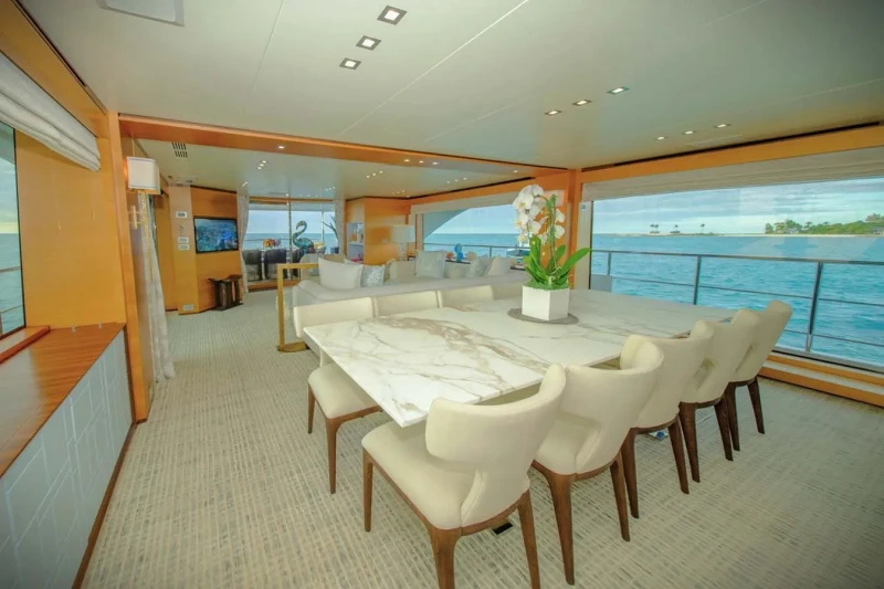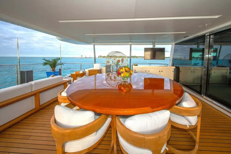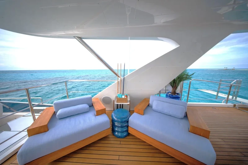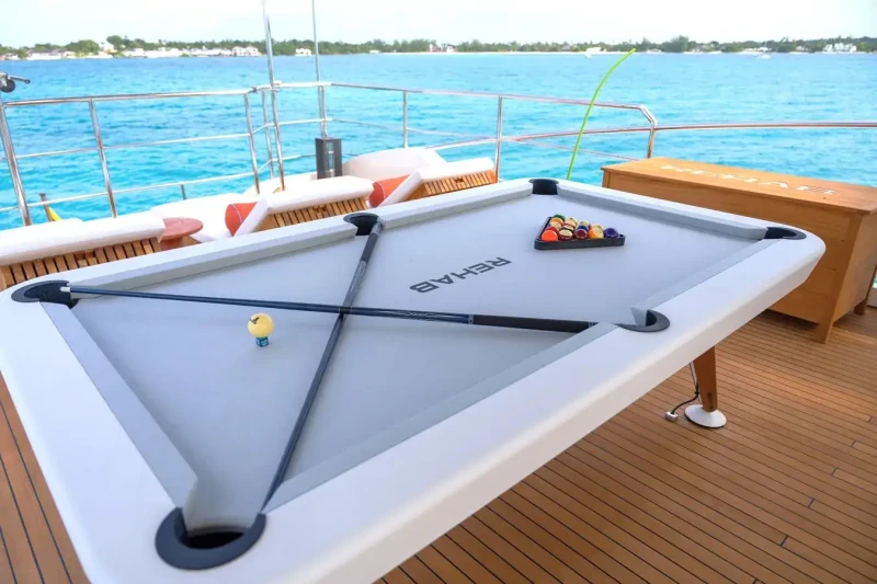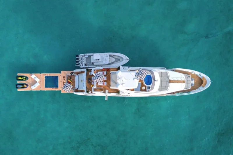 Keeping comfortable and entertained on Rehab is easy thanks to the available amenities, particularly a deck jacuzzi, perfect to enjoy the scenery with your favourite drink in hand.