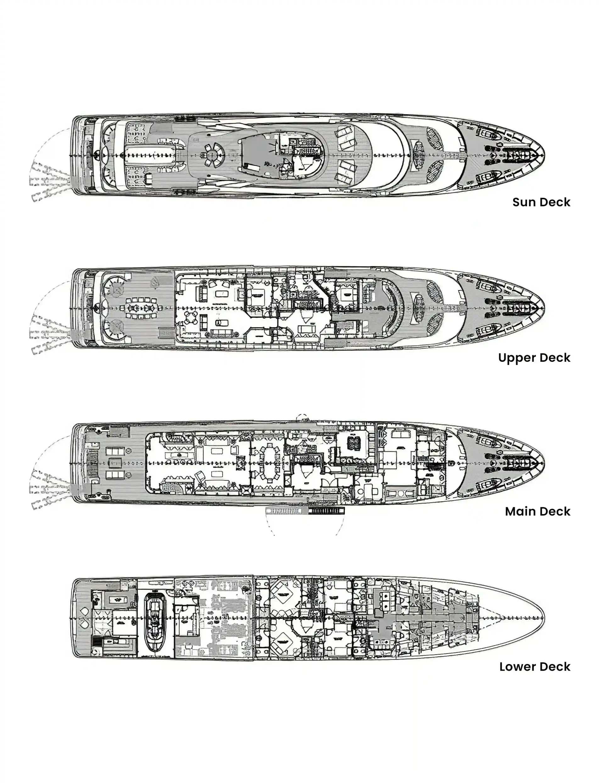 Richar has been designed to comfortably accommodate up to 12 guests in 6 suites comprising one VIP cabin. She is also capable of carrying up to 14 crew onboard to ensure a relaxed luxury yacht experience.