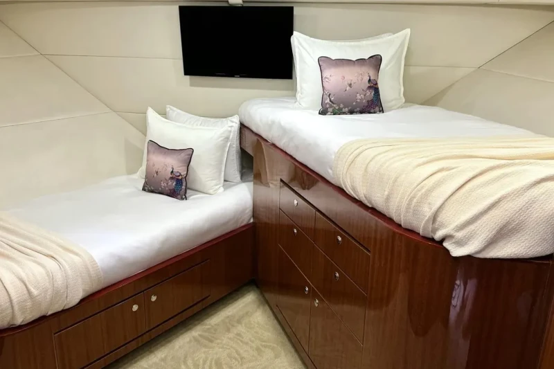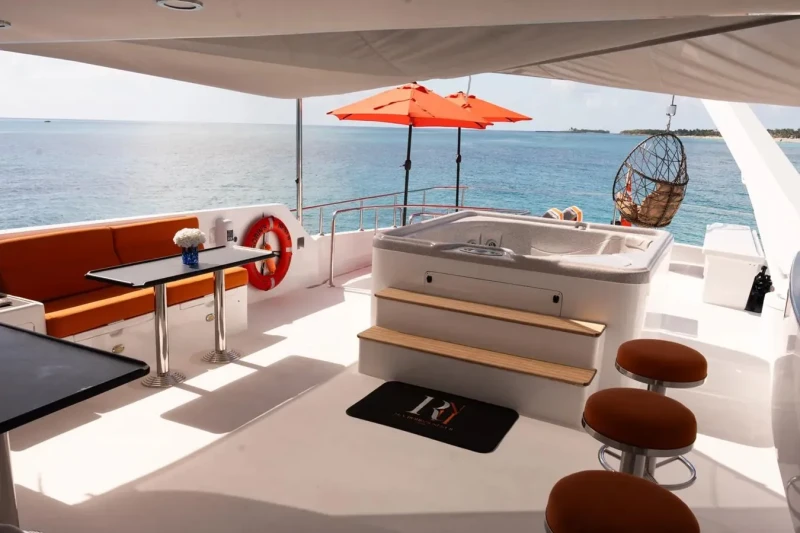 Julia has been designed to comfortably accommodate up to 10 guests in 5 suites comprising one VIP cabin. She is also capable of carrying up to 4 crew onboard to ensure a relaxed luxury yacht experience.