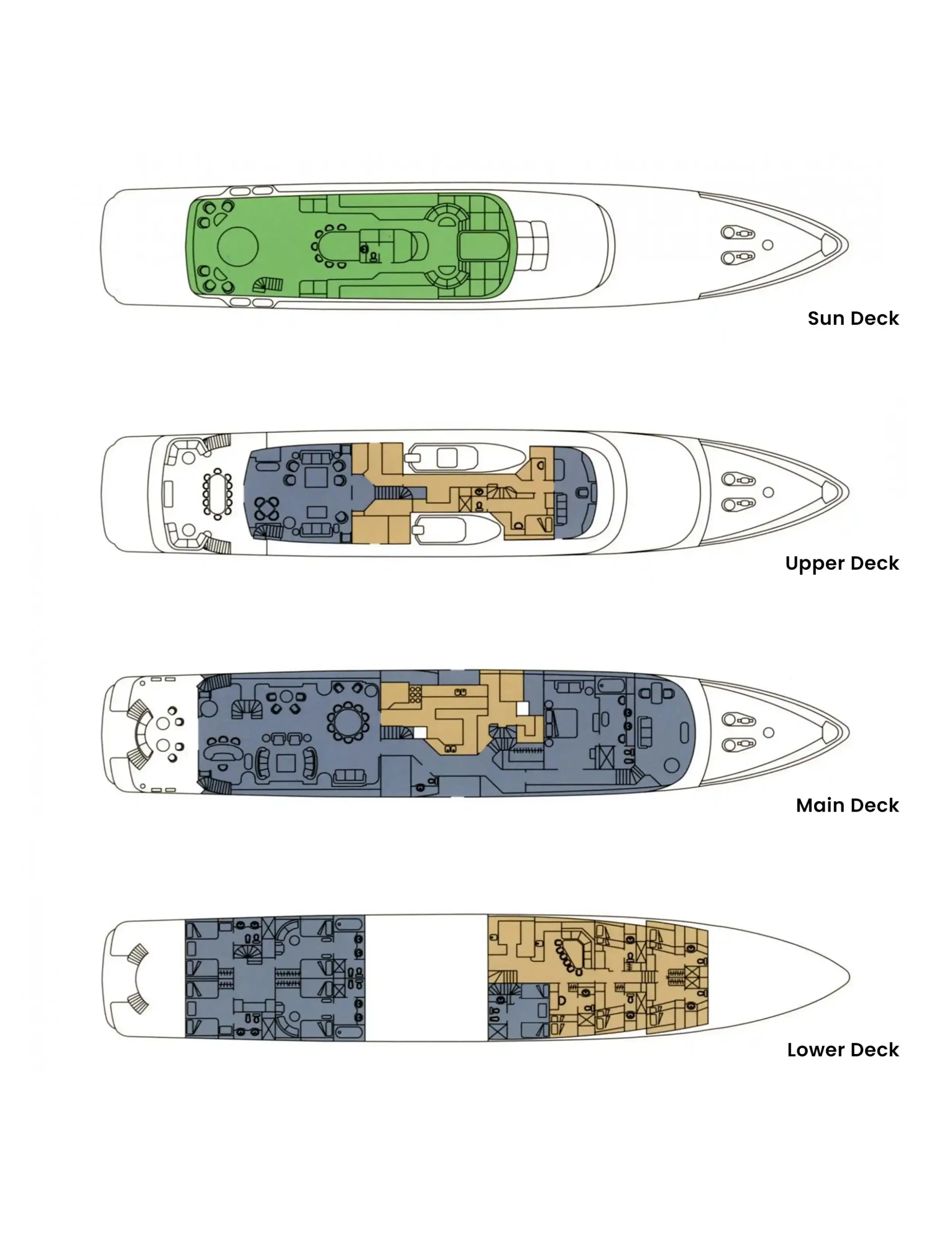 Sea Huntress has been designed to comfortably accommodate up to 14 guests in 6 suites. The supremely spacious full beam master suite incorporates its own study. She is also capable of carrying up to 14 crew onboard to ensure a relaxed luxury yacht experience.