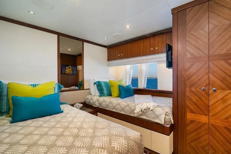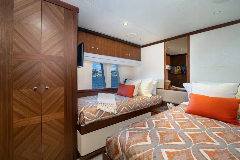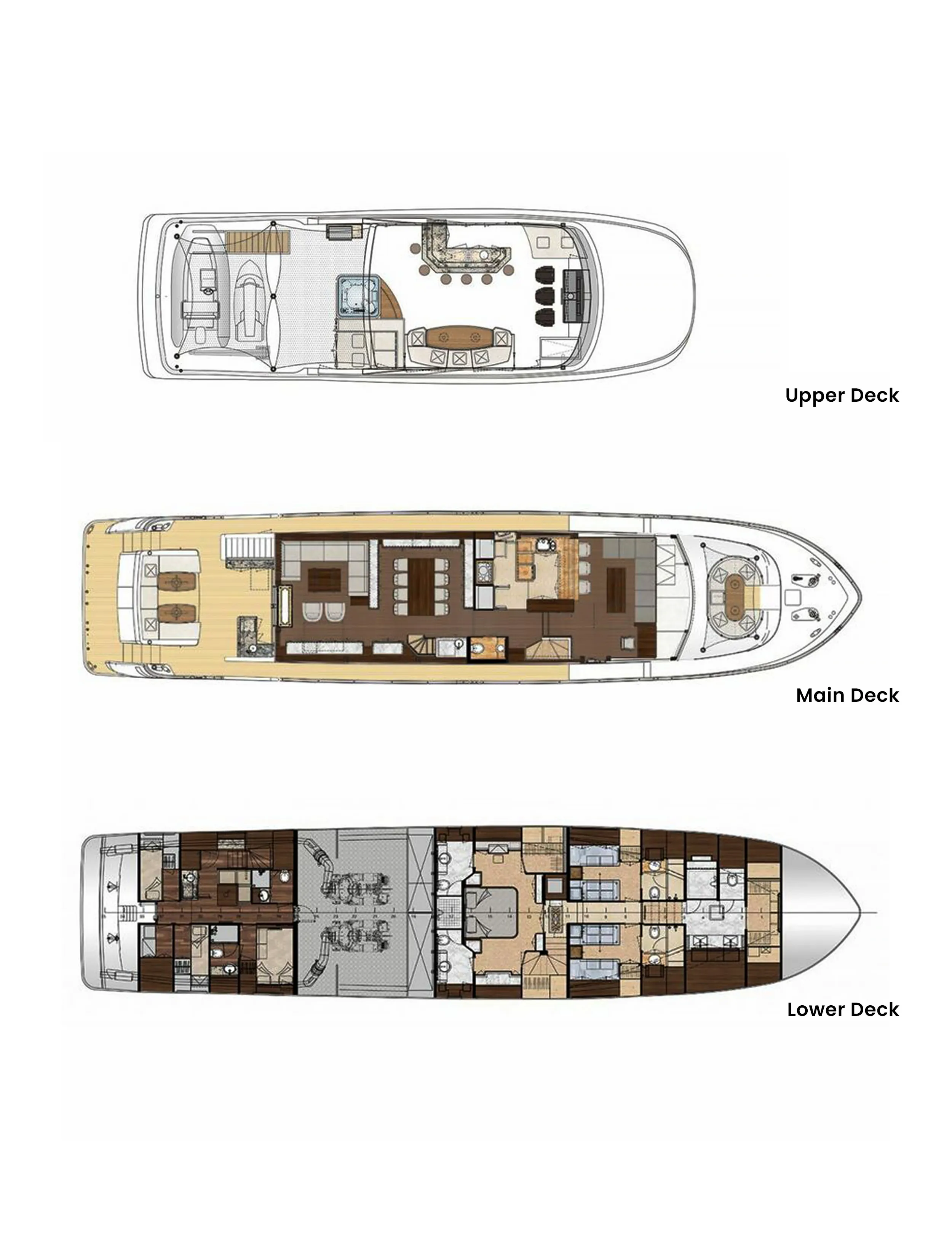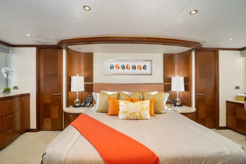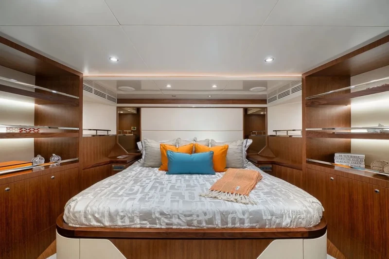Sea N Sea offers guest accommodation for up to 8 guests in 4 suites comprising a master suite, one VIP cabin and two twin cabins. There are 6 beds in total, including 1 king, 1 queen and 4 singles. She is also capable of carrying up to 4 crew onboard to ensure a relaxed luxury yacht charter experience.