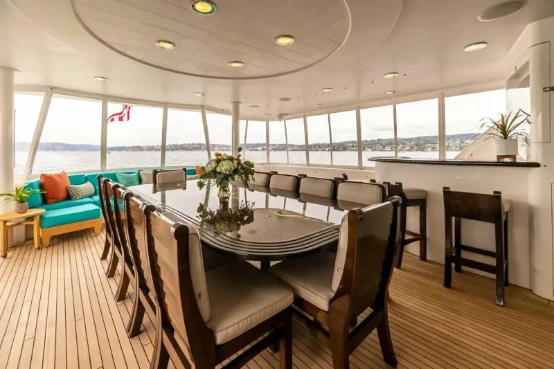 A charter on Serengeti is comfortable and convenient thanks to the provided amenities, notably a gym with all the latest equipment to maintain your fitness routine. Retreat to the deck jacuzzi and soak up the scenery.