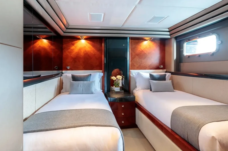 Built in 2001, Silver Dream offers guest accommodation for up to 10 guests in 5 suites comprising a master suite, two double cabins and two twin cabins. There are 7 beds in total, including 1 king, 2 doubles and 4 singles. She is also capable of carrying up to 9 crew onboard to ensure a relaxed luxury yacht charter experience.