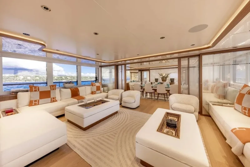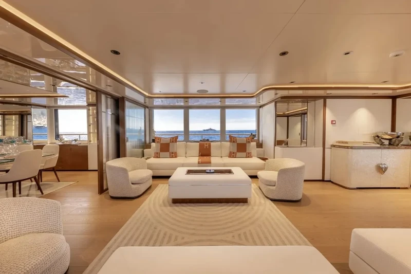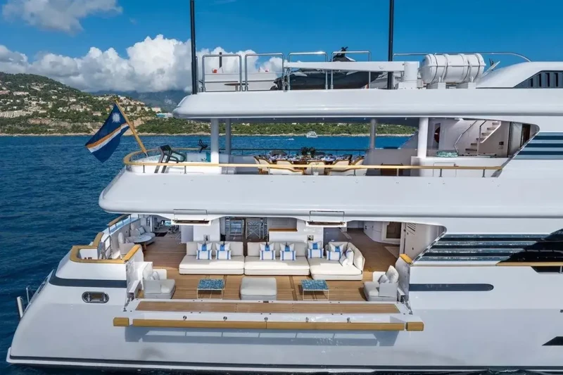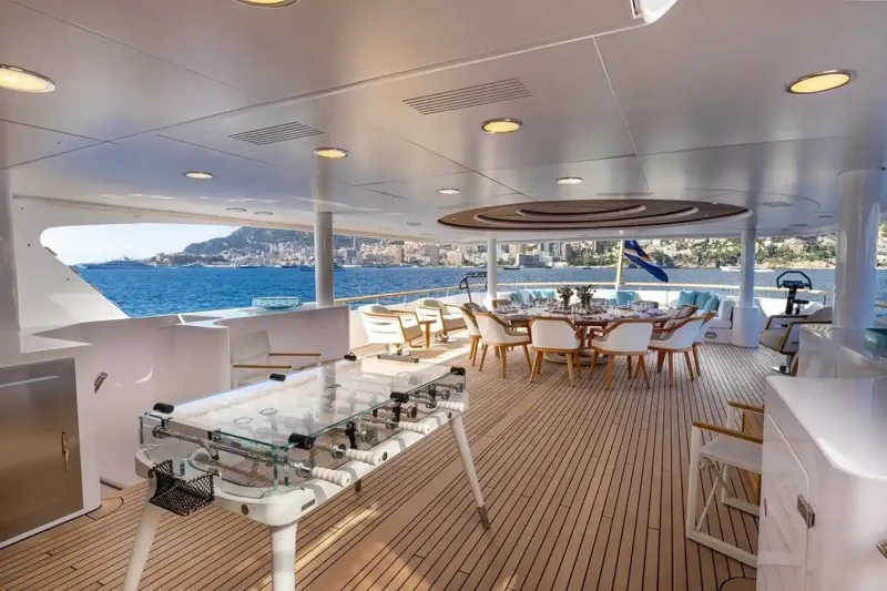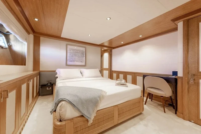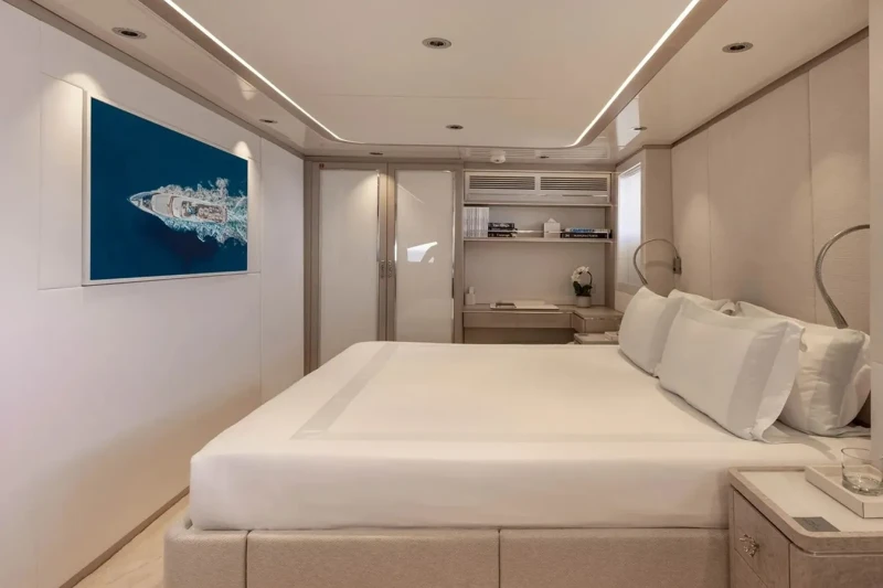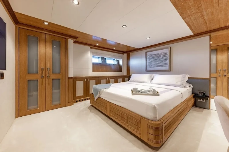 Solafide is great for families thanks to her child-friendly setup. She offers guest accommodation for up to 12 guests with a layout comprising a master suite, two double cabins and one twin cabin. The supremely spacious full beam master suite incorporates its own study and dressing room. There are 9 beds in total, including 1 king, 2 queen, 4 singles, 2 pullmans and 1 convertible. She is also capable of carrying up to 12 crew onboard to ensure a relaxed luxury yacht charter experience.