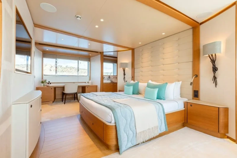 Built in 2015, Solis offers guest accommodation for up to 8 guests in 4 suites comprising a master suite and two cabins that can operate as twins or doubles. There are 6 beds in total, including 2 doubles and 4 singles. She is also capable of carrying up to 6 crew onboard to ensure a relaxed luxury yacht charter experience.
