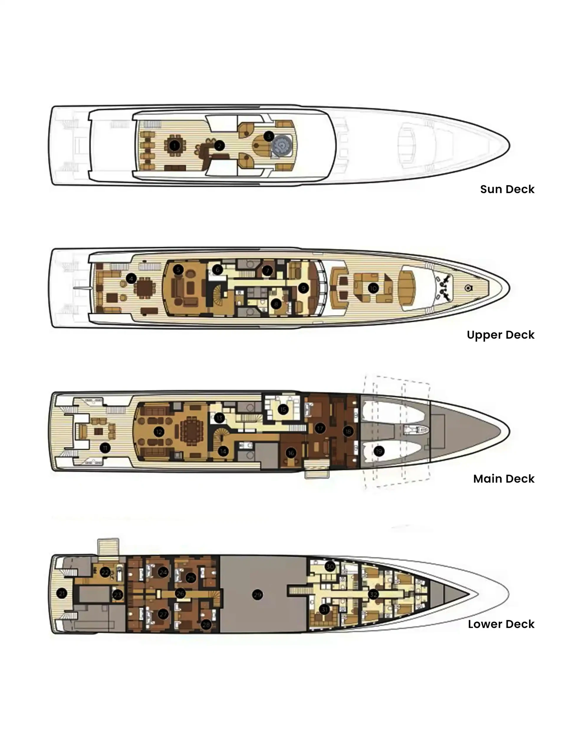 Somnium has been designed to comfortably accommodate up to 10 guests in 5 suites. She is also capable of carrying up to 14 crew onboard to ensure a relaxed luxury yacht experience.
