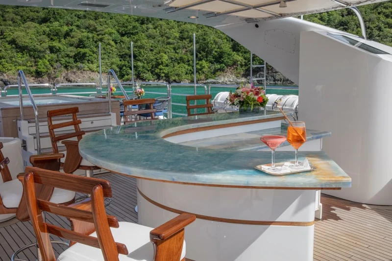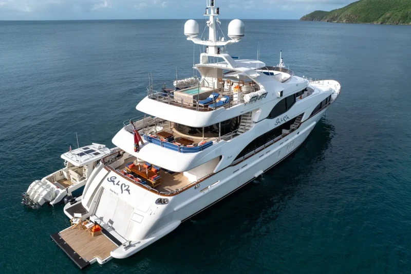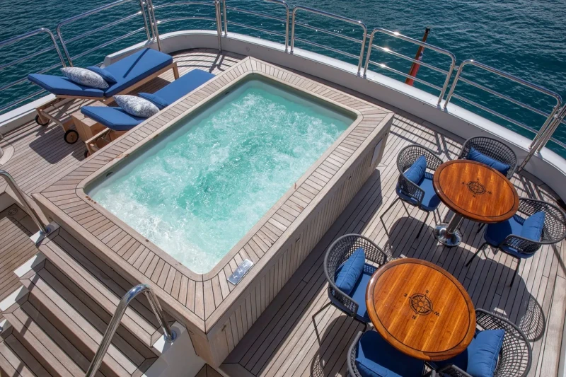 Her features include satellite communications, gym, deck jacuzzi, WiFi and air conditioning.