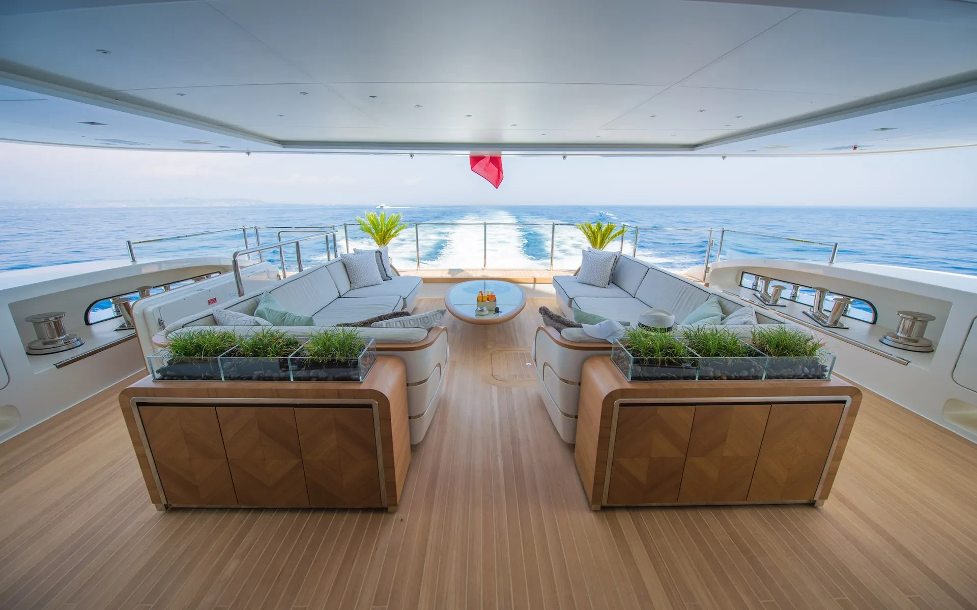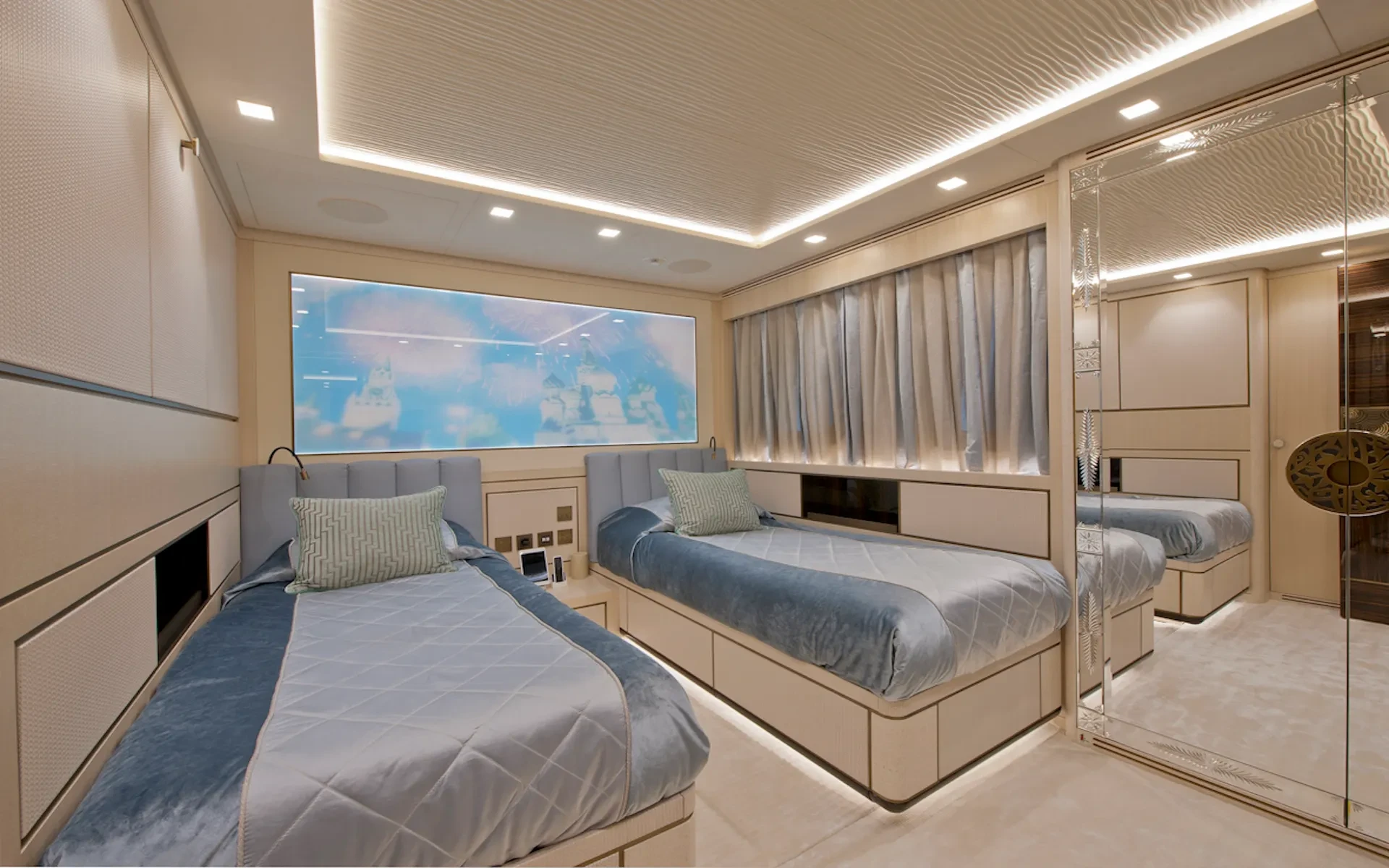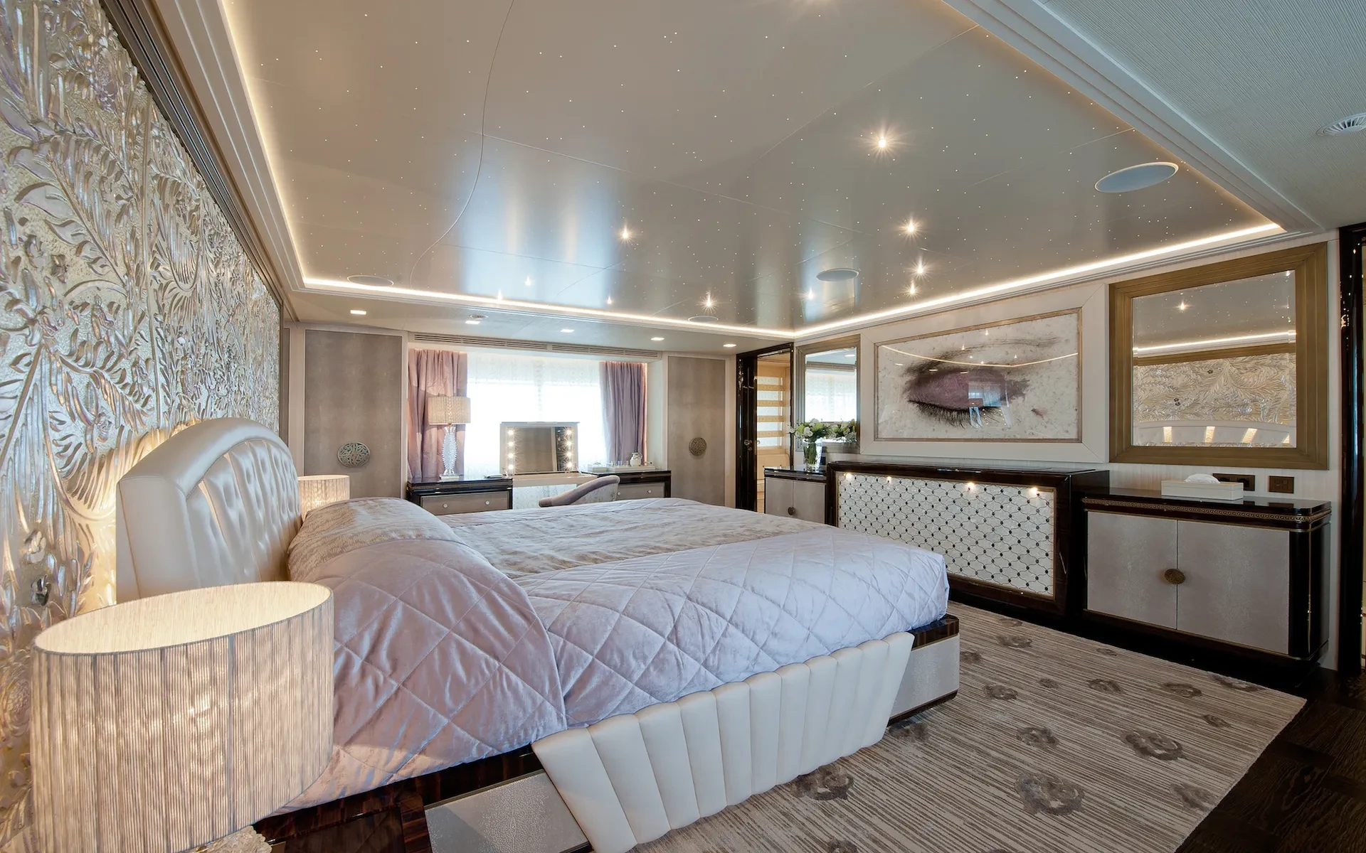 Families will particularly love The Scorpion thanks to her child-friendly setup. Built in 2015, She offers guest accommodation for up to 12 guests with a layout comprising a master suite, two VIP cabins and two cabins that can operate as twins or doubles. There are 9 beds in total, including 1 king, 2 queen, 4 singles and 2 pullmans. She is also capable of carrying up to 10 crew onboard to ensure a relaxed luxury yacht charter experience.
