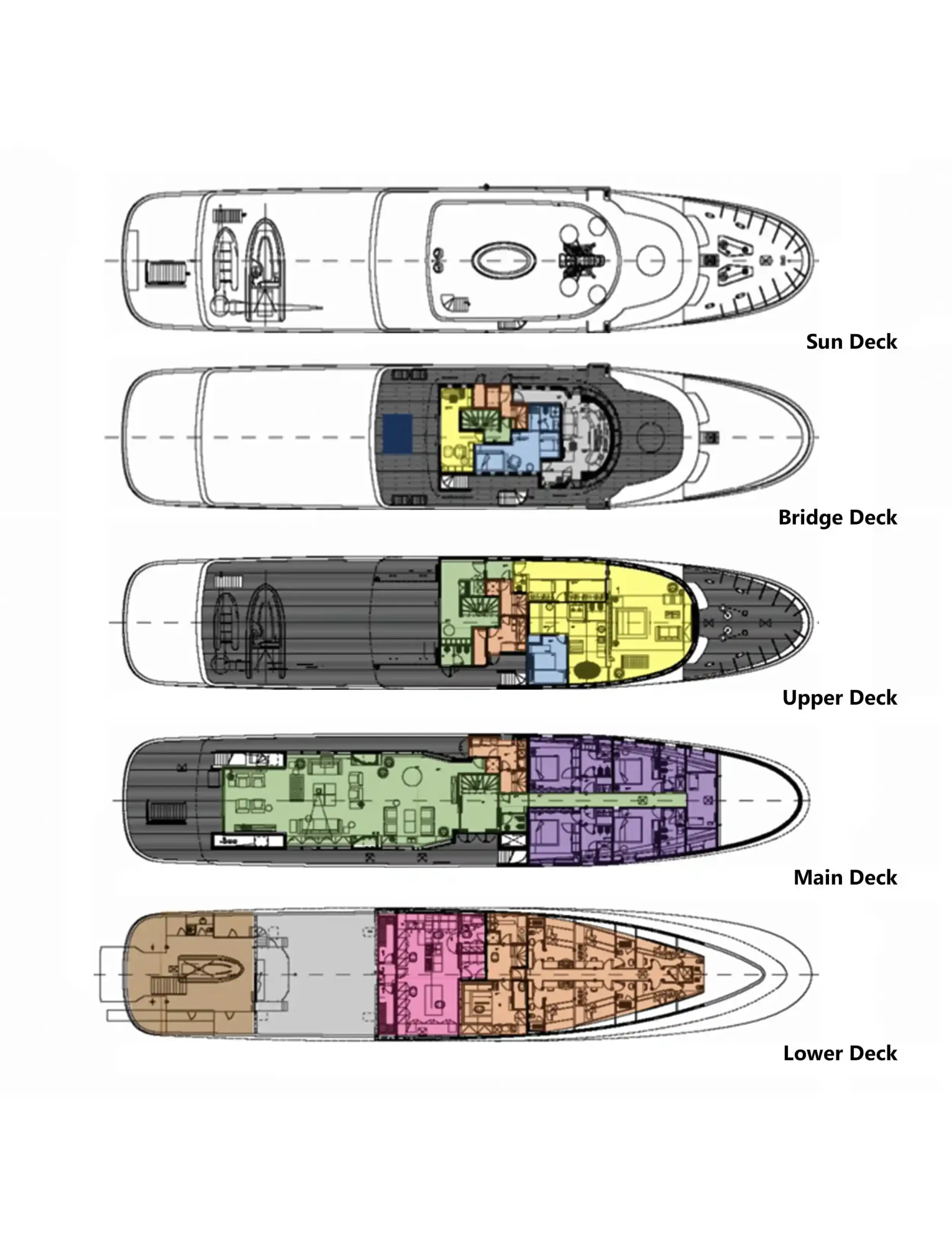 Tribu has been designed to comfortably accommodate up to 12 guests in 6 suites. She is also capable of carrying up to 13 crew onboard to ensure a relaxed luxury yacht experience.