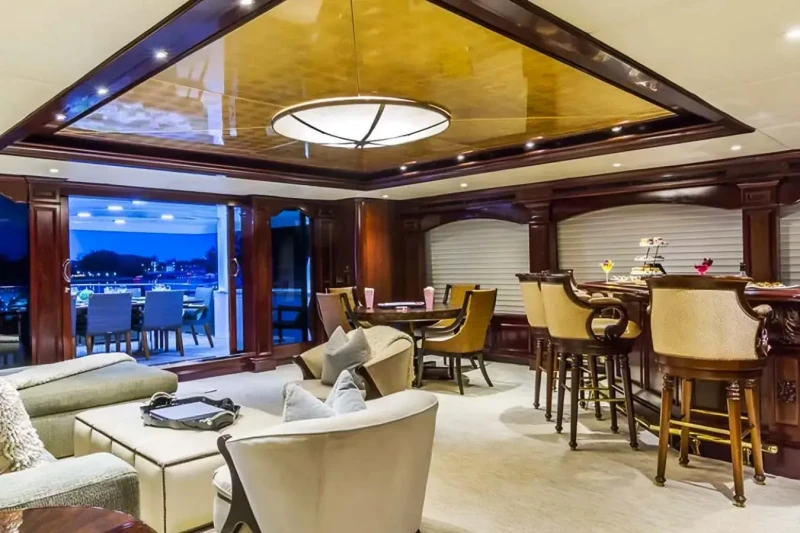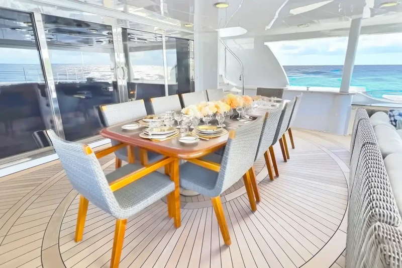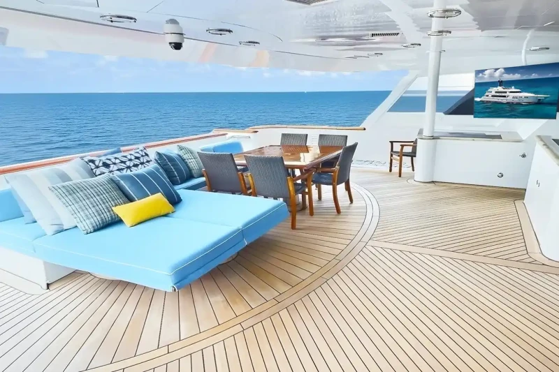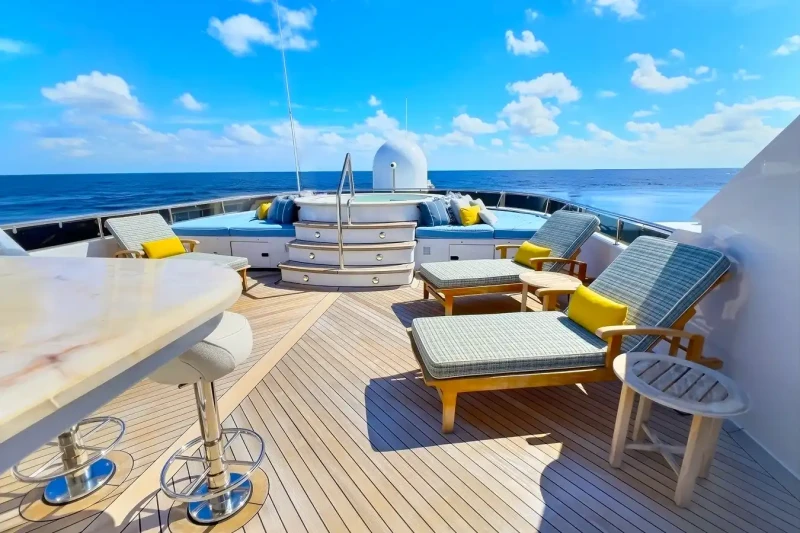 On deck, guests can unwind in the jacuzzi, enjoy a cocktail at the sundeck or upper lounge bar, or stay active in the gym. The yacht is fully equipped with WiFi and air conditioning throughout. For those who seek adventure on the water, TRUE LOVE’s toy selection is exceptional, including: 5.79m / 19’ Nautica Tender, Jet skis. Seabobs, Waterskiing, Wakeboarding gear, Inflatable beach club, Water trampoline, Waterslide, Airfoils, Snorkeling equipment. To complete the experience, guests can enjoy onboard massage treatments, creating the perfect balance of relaxation and recreation. Whether cruising secluded coves or entertaining on deck, TRUE LOVE delivers the ultimate superyacht lifestyle.