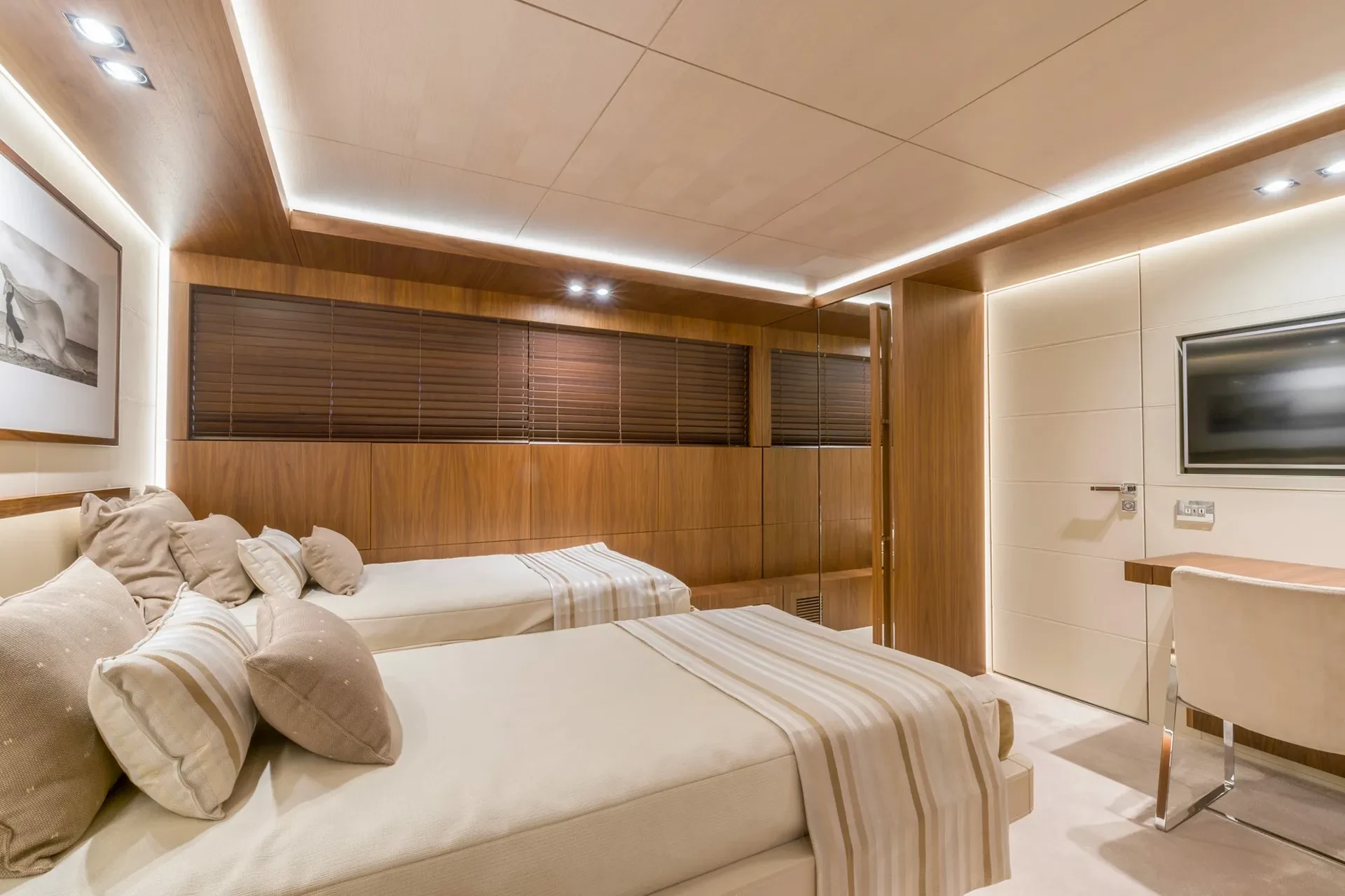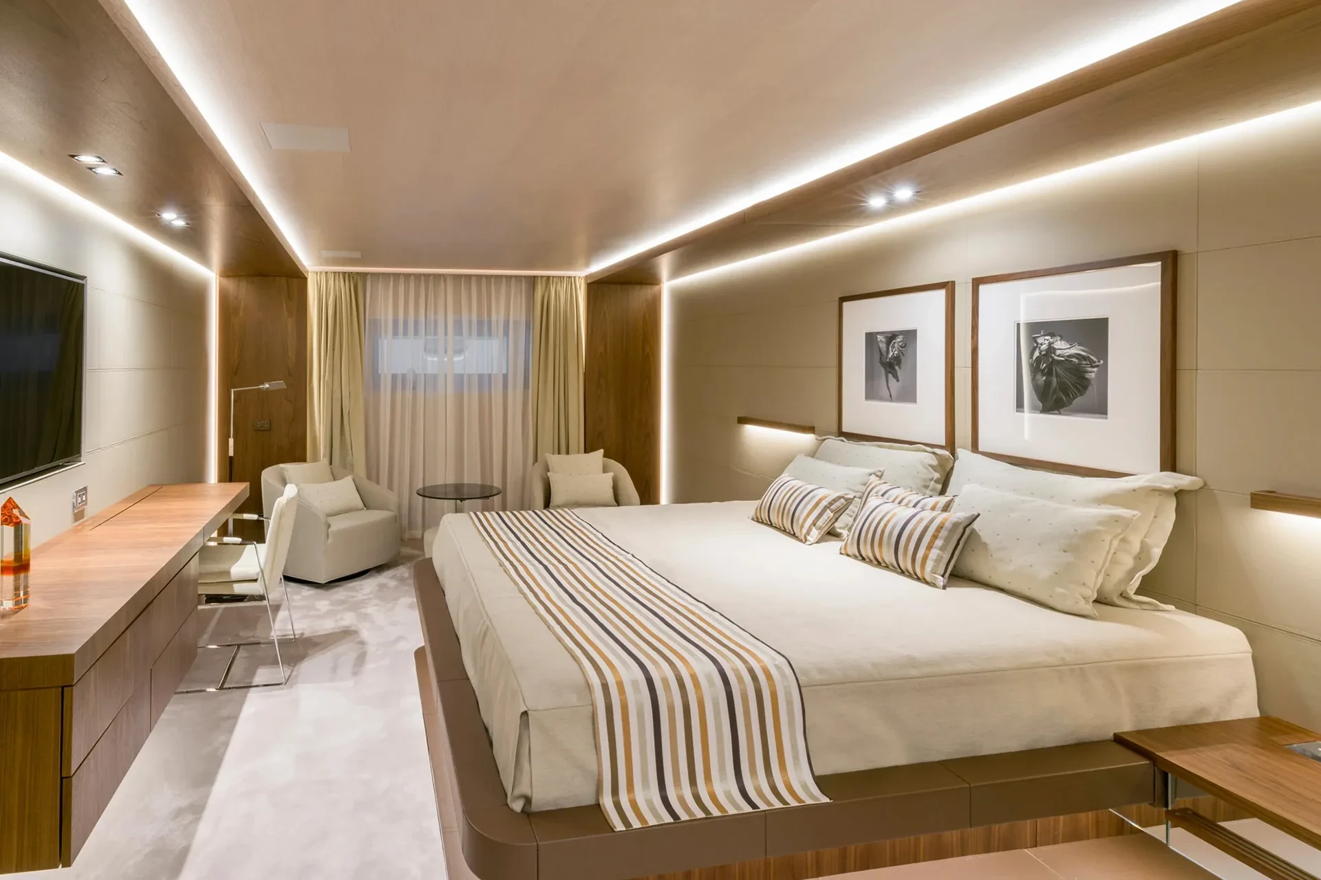 Built in 2018, Utopia IV offers guest accommodation for up to 12 guests in 6 suites comprising a master suite, one VIP cabin, three double cabins and one twin cabin. She is also capable of carrying up to 13 crew onboard to ensure a relaxed luxury yacht charter experience.