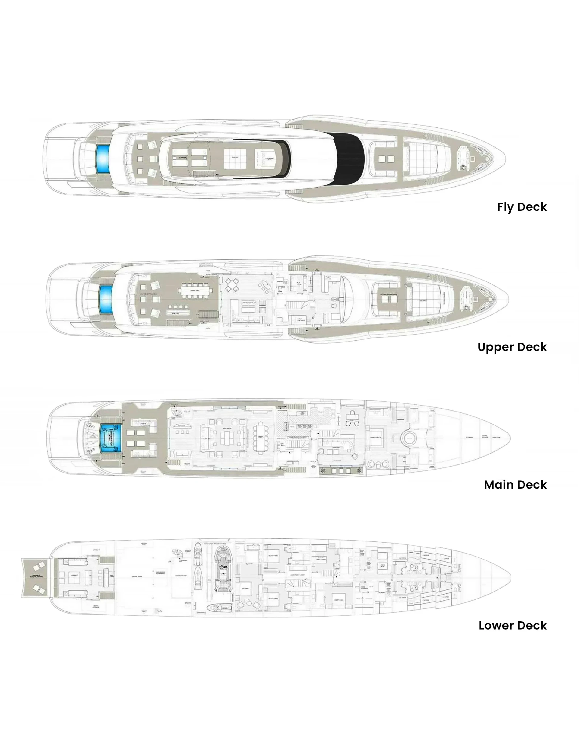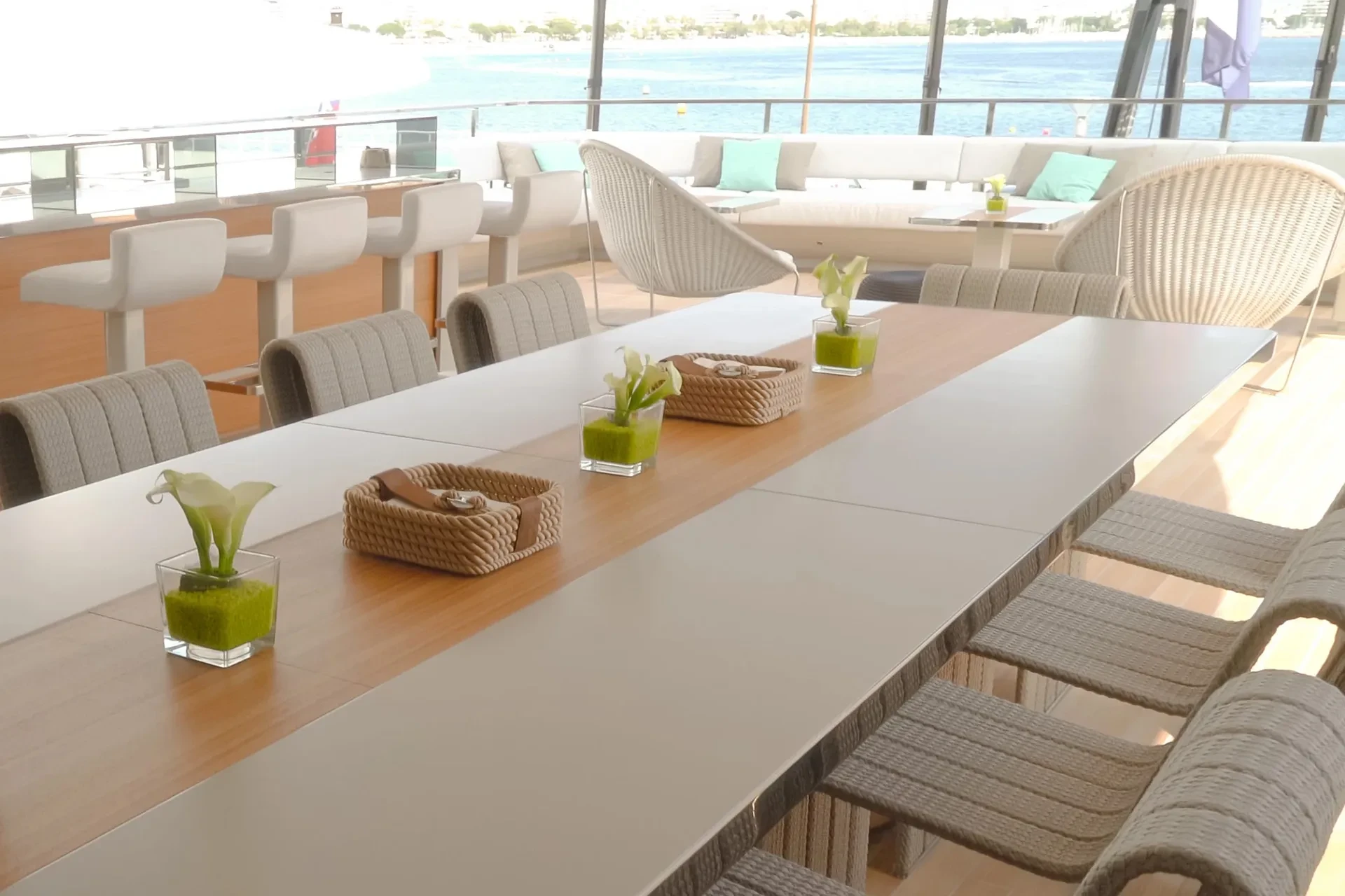 On your charter, you'll find plenty to keep you busy and entertained, notably a children's playroom, perfect for keeping younger guests happy and safe. Take a plunge in the pool under the sun or elsewhere, even the most discerning of charter guests will enjoy the included beach club. A gym with all the latest equipment is available for a good work out and sit back with a glass of champagne in the deck jacuzzi.