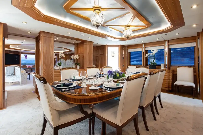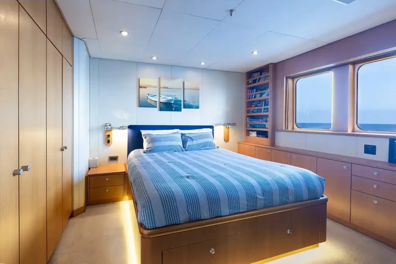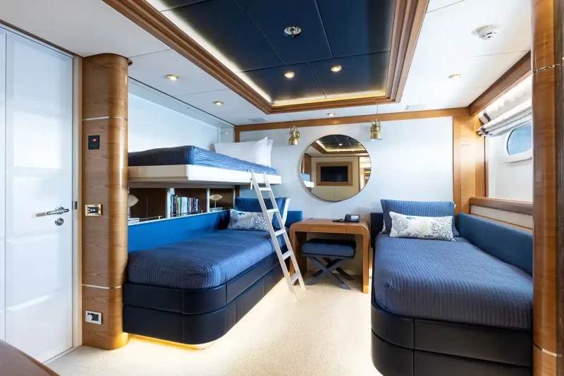 Vibrance is great for families thanks to her child-friendly setup. She offers guest accommodation for up to 12 guests with a layout comprising a master suite, one VIP cabin, one double cabin and two twin cabins. There are 9 beds in total, including 1 king, 2 queen, 4 singles and 2 pullmans. She is also capable of carrying up to 11 crew onboard to ensure a relaxed luxury yacht charter experience.