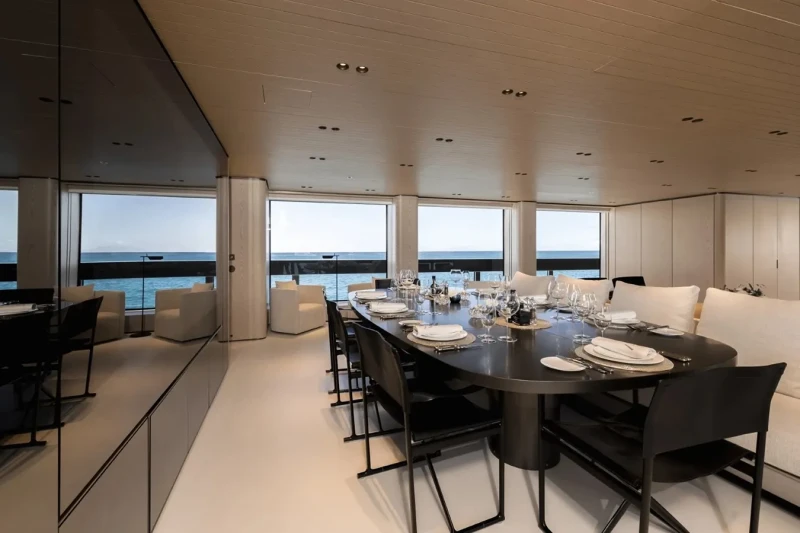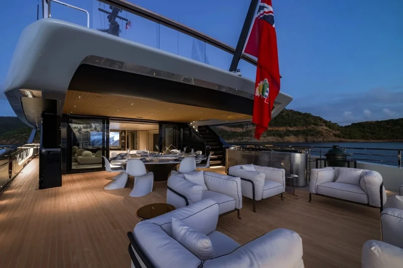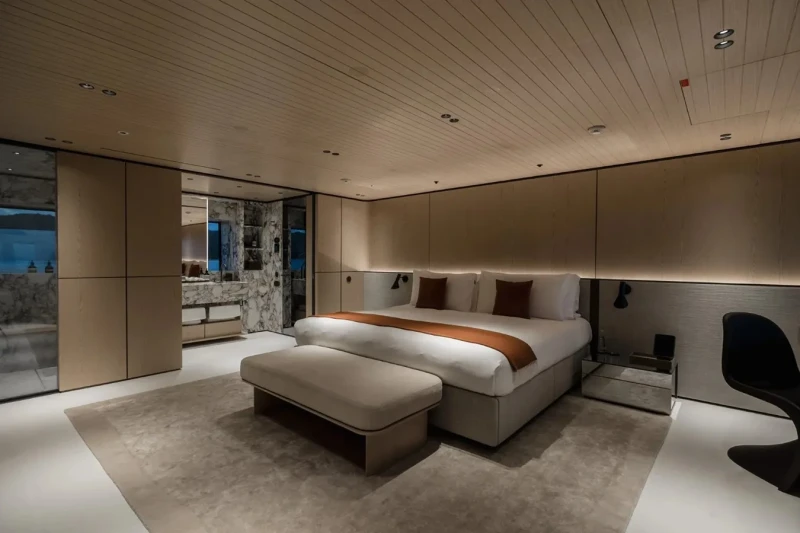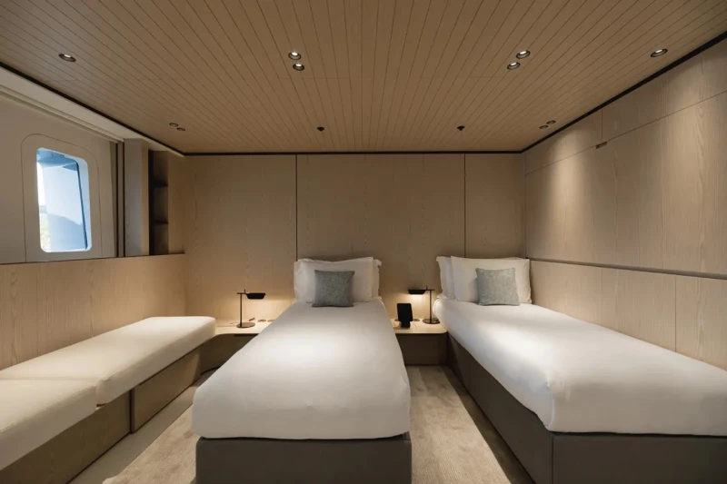 Built in 2023, Virtuosity offers guest accommodation for up to 12 guests in 6 suites comprising a master suite, one VIP cabin and two double cabins. The bed configuration includes 2 convertible. She is also capable of carrying up to 12 crew onboard to ensure a relaxed luxury yacht charter experience.
