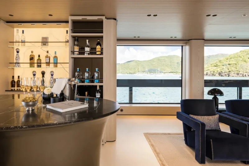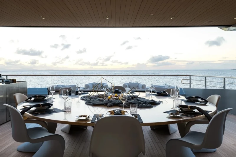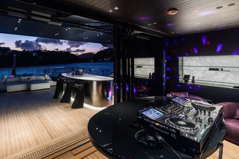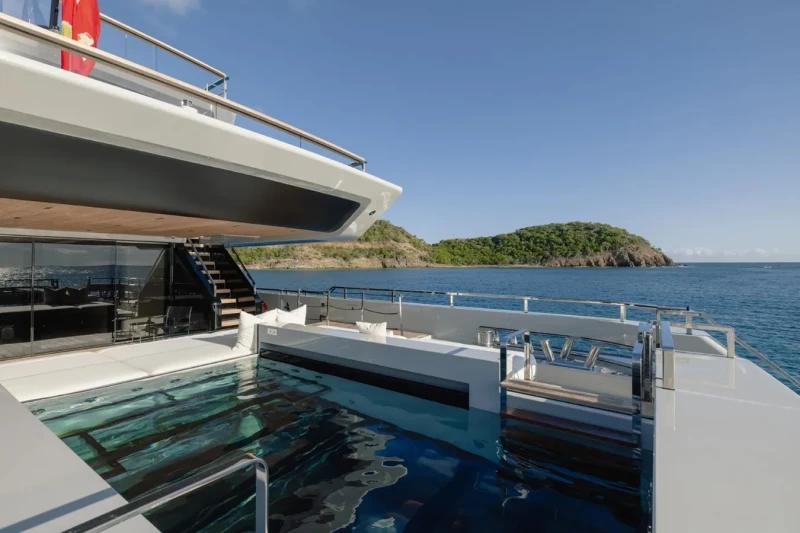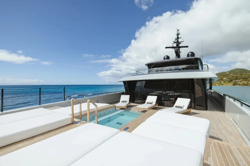 A charter on Virtuosity is comfortable and convenient thanks to the provided amenities, notably a sauna to help you detox and regenerate. Take a plunge in the pool under the sun and even the most discerning of charter guests will enjoy the included beach club. Sit back with a glass of champagne in the deck jacuzzi.