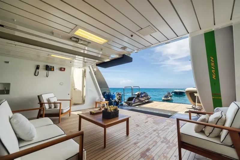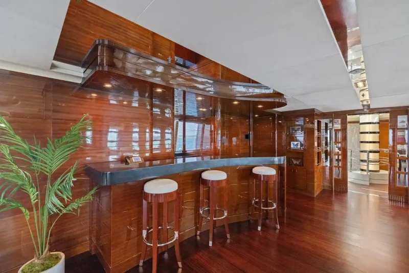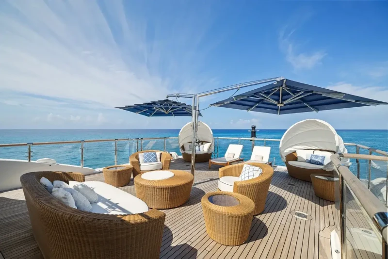 Her features include satellite communications, gym, deck jacuzzi, WiFi and air conditioning.