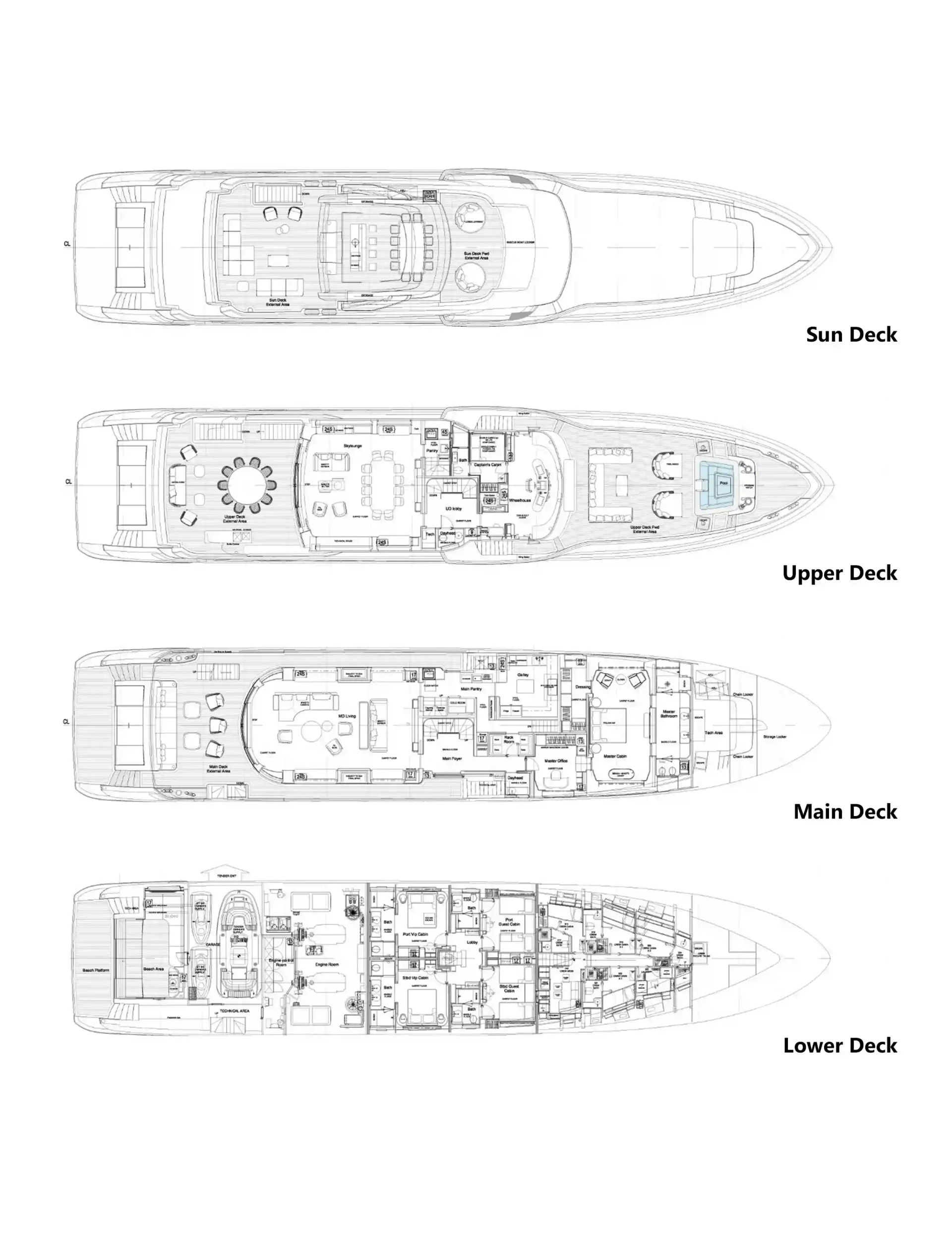 - Day head on main and upper deck