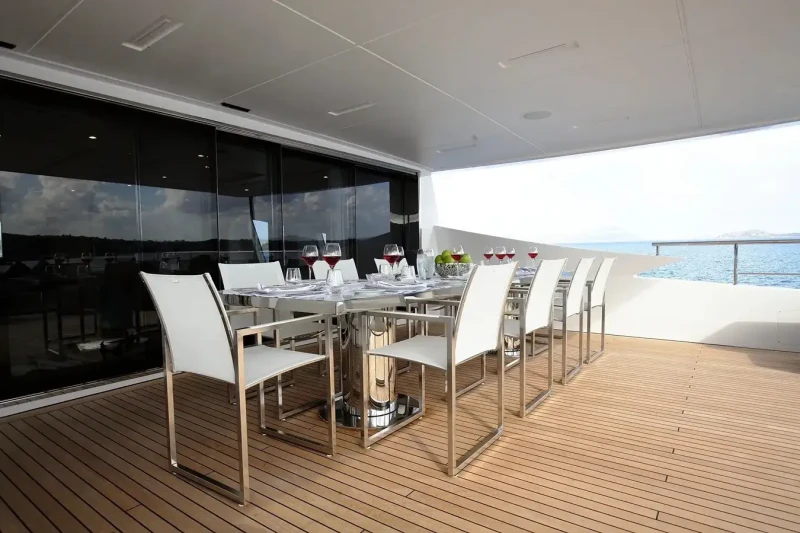 Built in 2017, Willow offers guest accommodation for up to 10 guests in 5 suites comprising a master suite, one VIP cabin, one double cabin and two twin cabins. There are 7 beds in total, including 1 king, 1 queen, 1 double and 4 singles. She is also capable of carrying up to 8 crew onboard to ensure a relaxed luxury yacht charter experience.