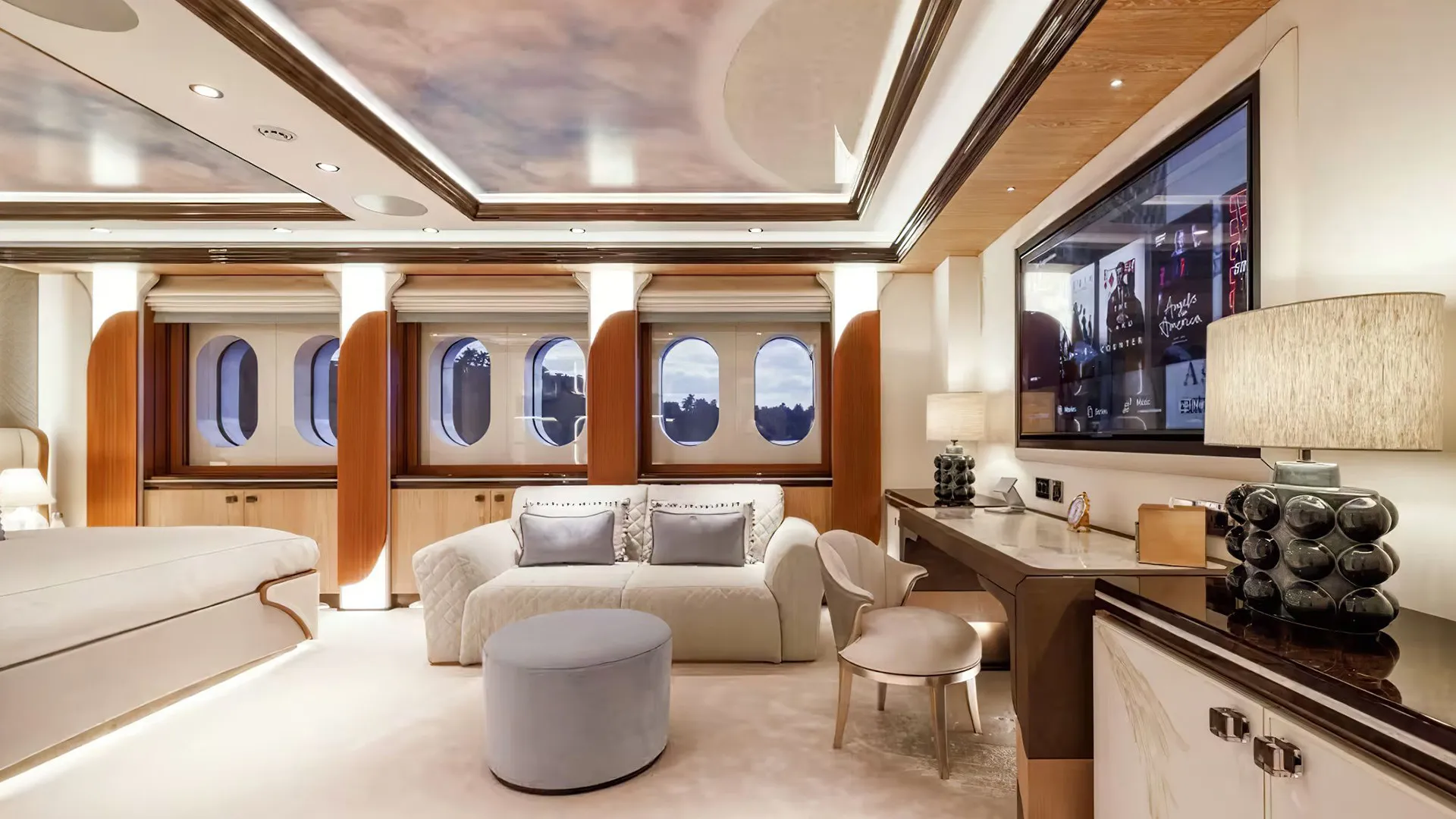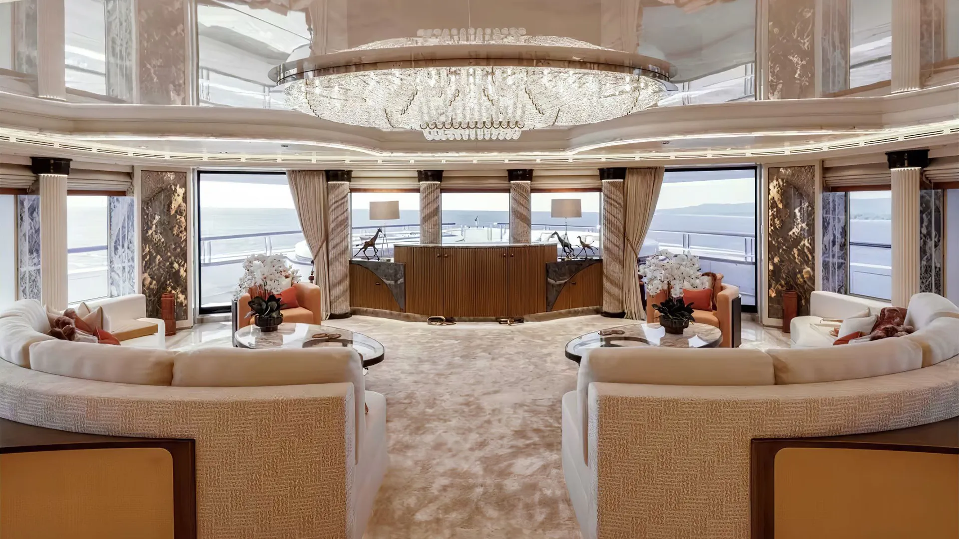 A charter on Ahpo is comfortable and convenient thanks to the provided amenities including a dancefloor where you and your guests can celebrate in style. A piano is also present to create a fantastic atmosphere and in addition for those looking to unwind after a long day of exploration on the water, you will find a dedicated and comfortable movie theatre. Alternatively the latest beauty and hair treatments are available in the luxurious beauty room or take the opportunity to be thoroughly pampered and indulged in the spa. Revive yourself after an intense workout in the sauna or elsewhere, take a plunge in the pool under the sun. Head to the beach club and take advantage of indoor-outdoor living and entertaining plus a gym with all the latest equipment is available for a good work out. Soak up the bubbles in style in the deck jacuzzi.