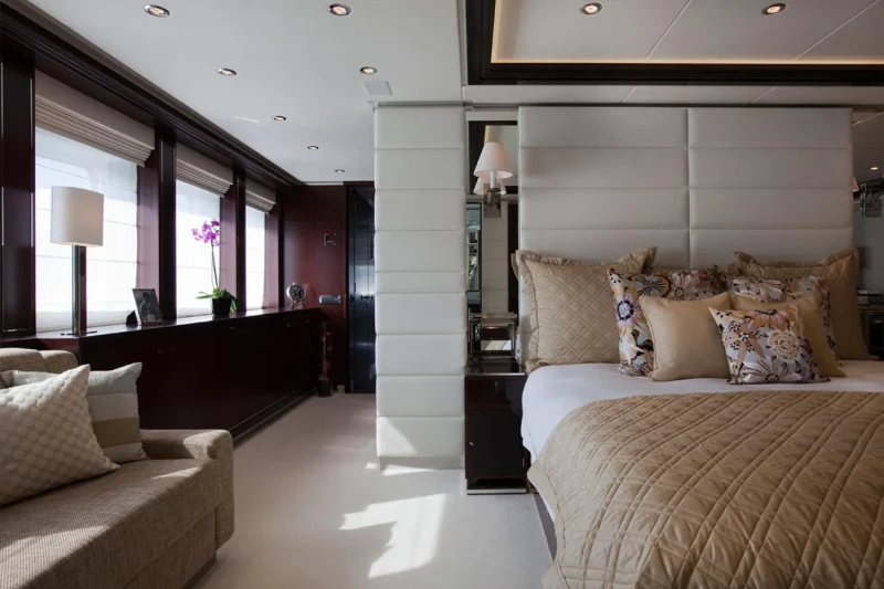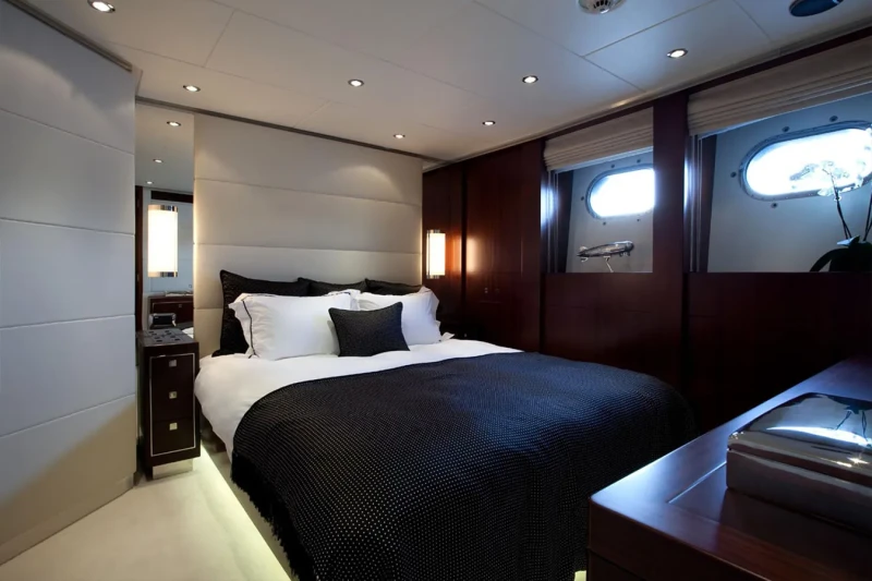 Ailish V has been designed to comfortably accommodate up to 10 guests in 5 suites comprising one VIP cabin. The supremely spacious full beam master suite features extensive storage space provided by the dressing room. She is also capable of carrying up to 6 crew onboard to ensure a relaxed luxury yacht experience.